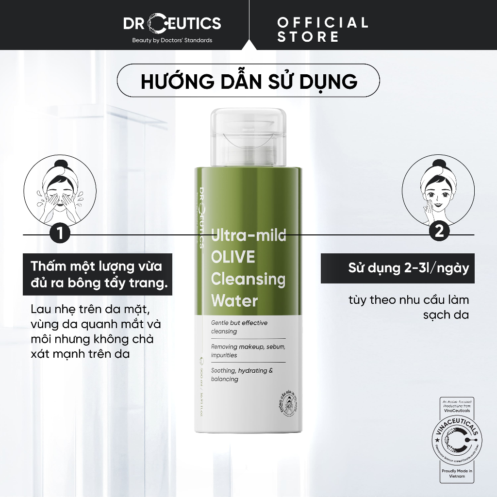 PHIÊN BẢN 2025 DRCEUTICS Nước Tẩy Trang Ultra-mild OLIVE Cleansing Water Cho Mọi Loại Da, Da Nhạy Cảm 500ml