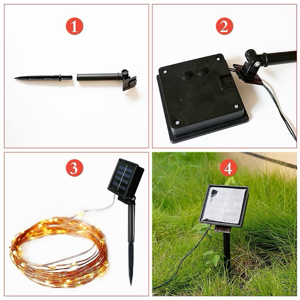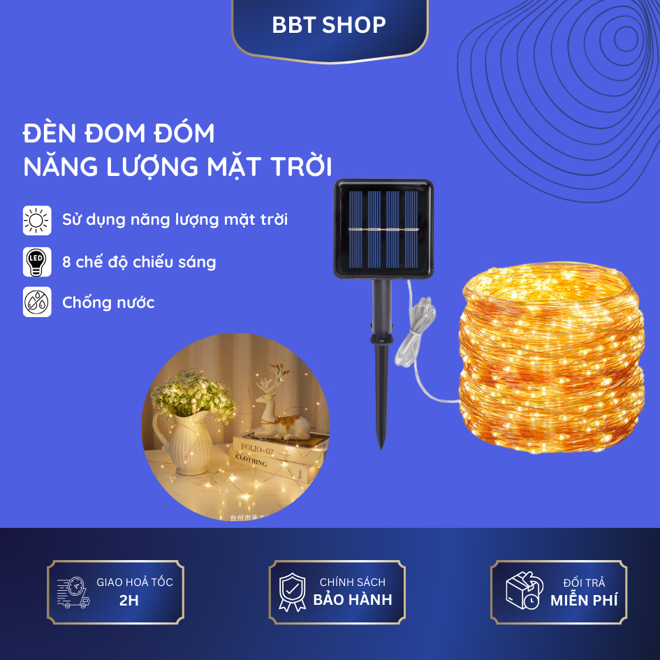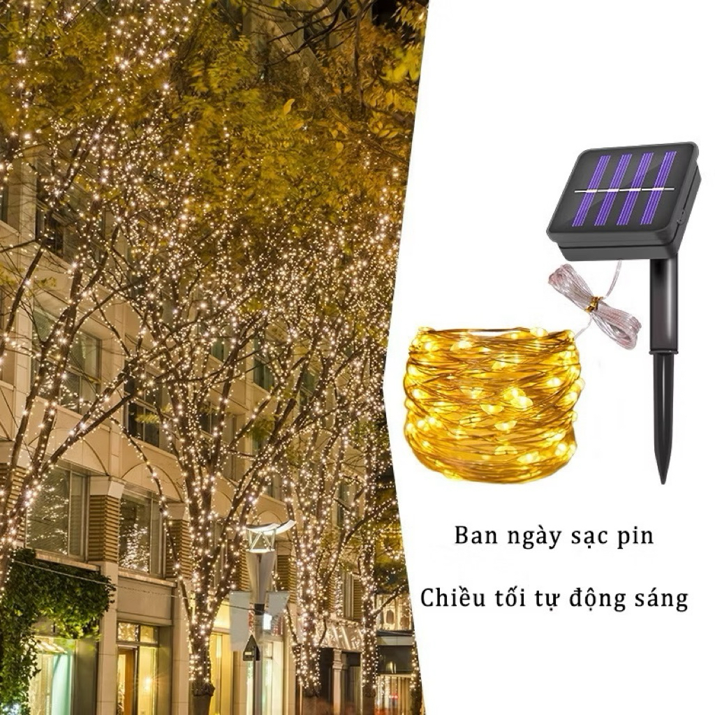 Dây đèn Led đom đóm năng lượng mặt trời 8 chế độ chiếu sáng chống nước dùng quấn cây và trang trí