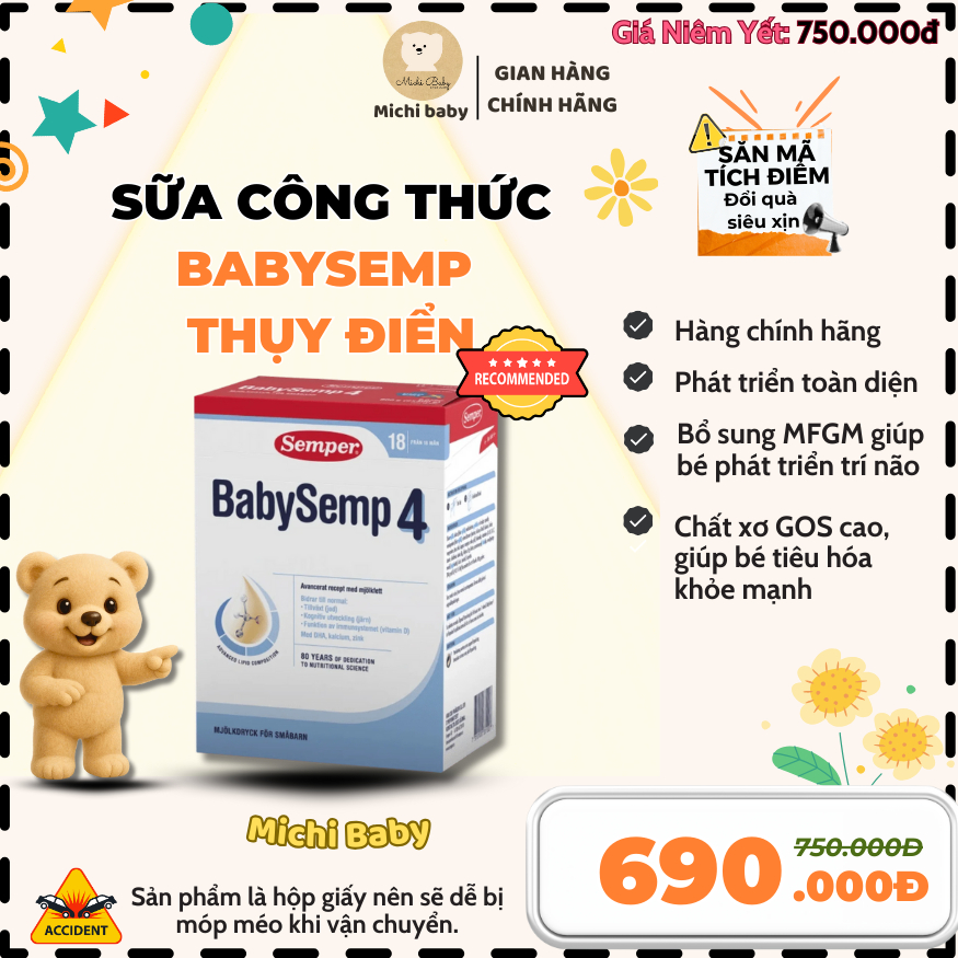 Sữa Công Thức BabySemp Thụy Điển Đầy Đủ Số Hộp 800g - Michi baby MC714