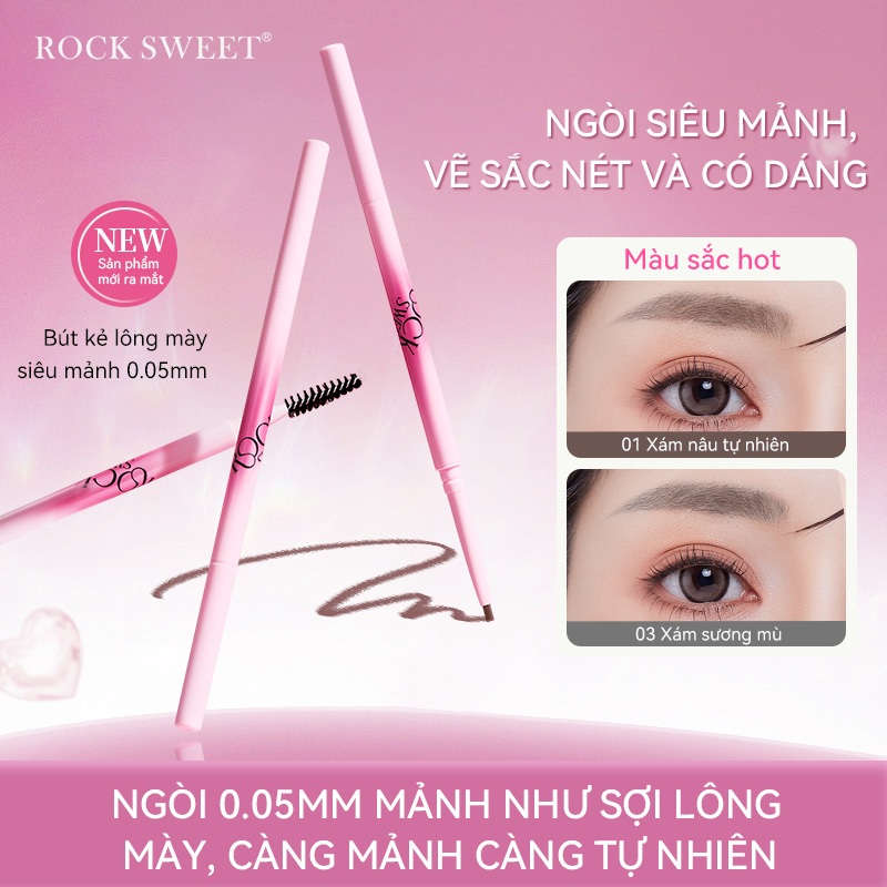 ROCK SWEET RS Bút chì mày 0.05mm đầu nước mắt siêu mỏng - không thấm nước tự nhiên (đa màu sắc)