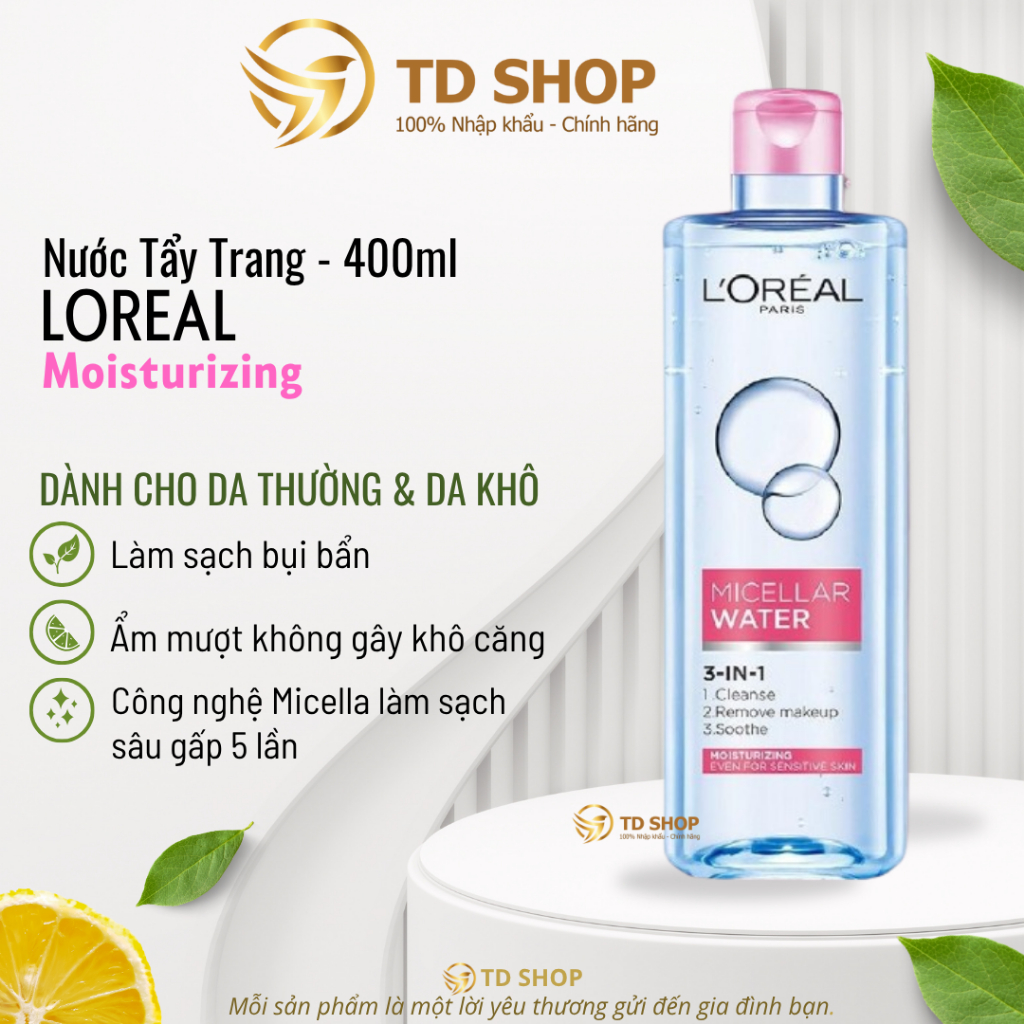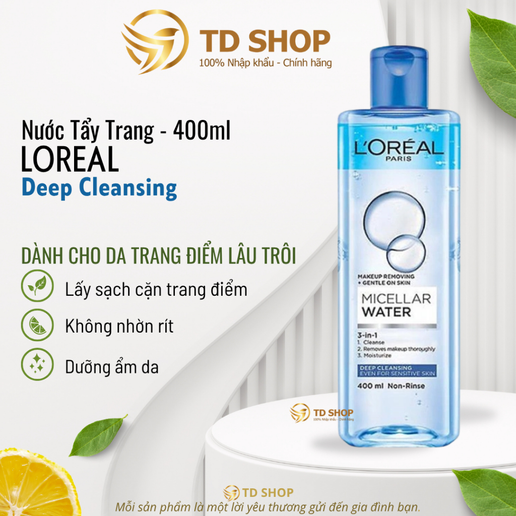 [Hàng Công ty] Nước Tẩy Trang Loreal 400ml Sạch sâu | Dưỡng ẩm dành cho mọi loại da - TD Shop