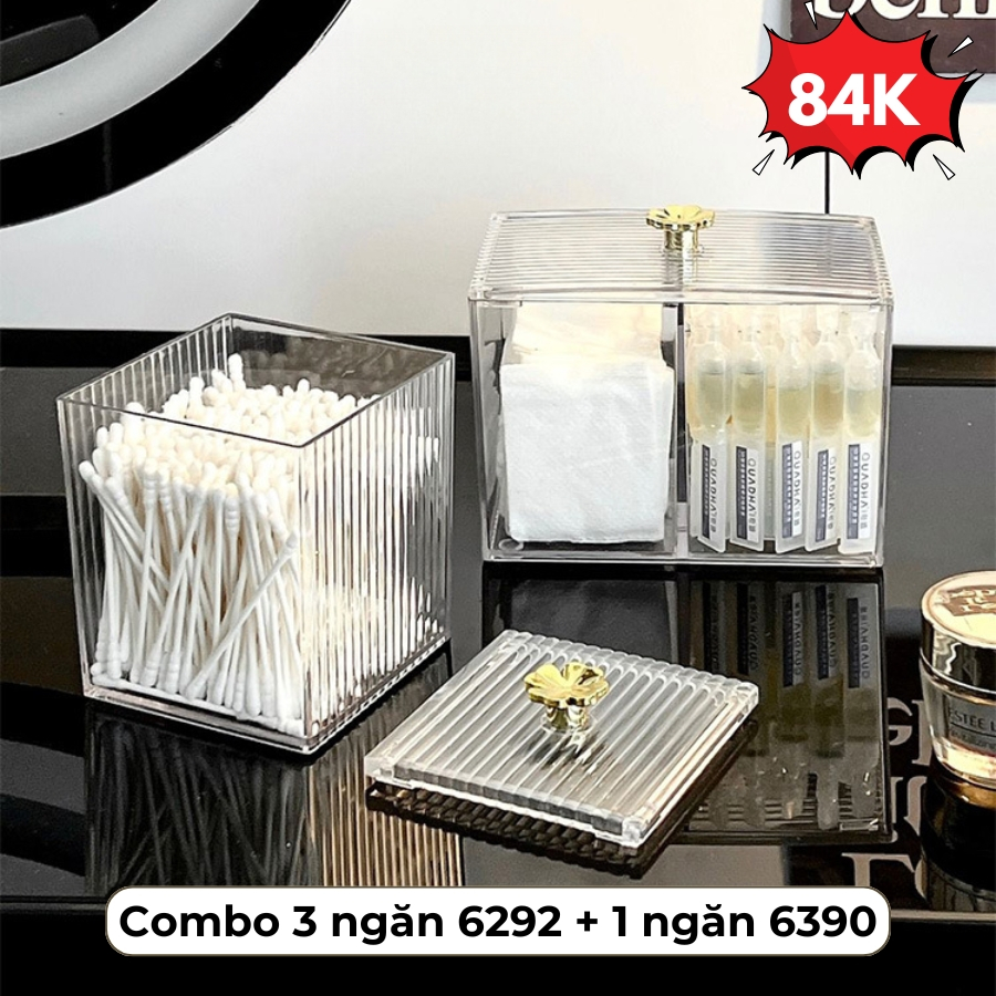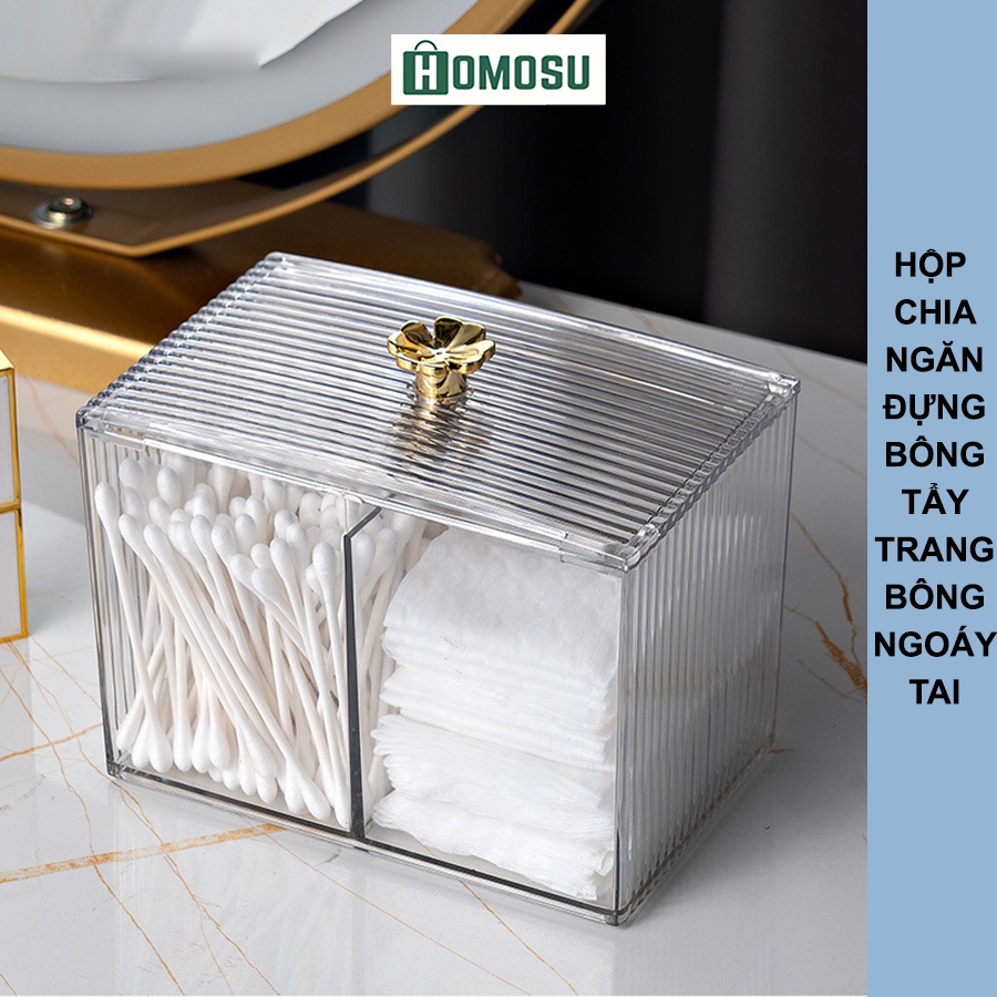Hộp Đựng Bông Tẩy Trang, Bông Ngoáy Tai, Đồ Trang Điểm Cao Cấp Chia Ngăn R005