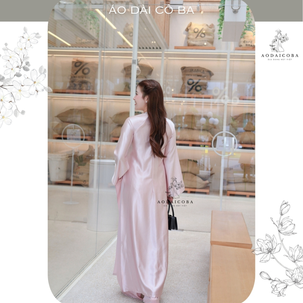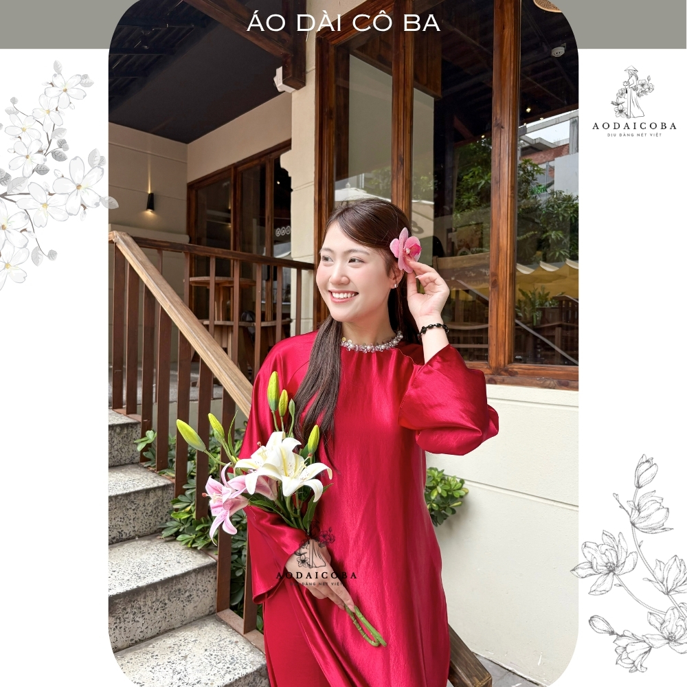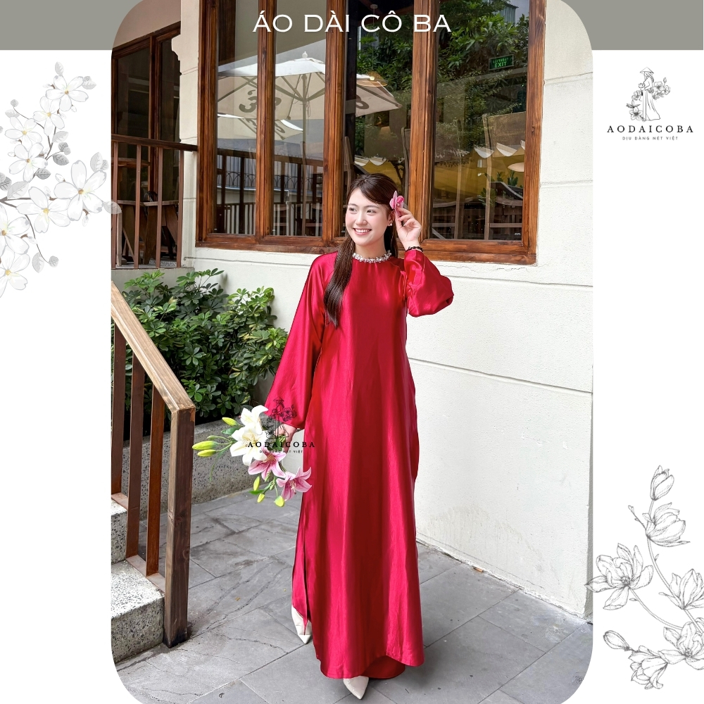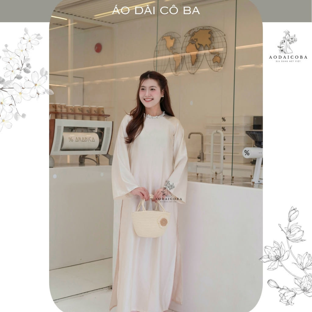 Áo Dài Cách Tân Nữ Dáng Suông Cổ Tròn Mộng Giao Lụa Tráng Gương Mịn, Tay Dài Loe Rộng Sang Trọng, Cổ Kết Ngọc Trai
