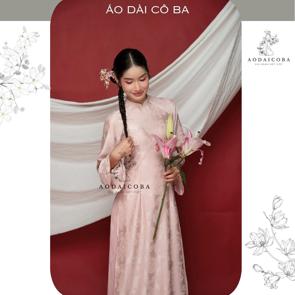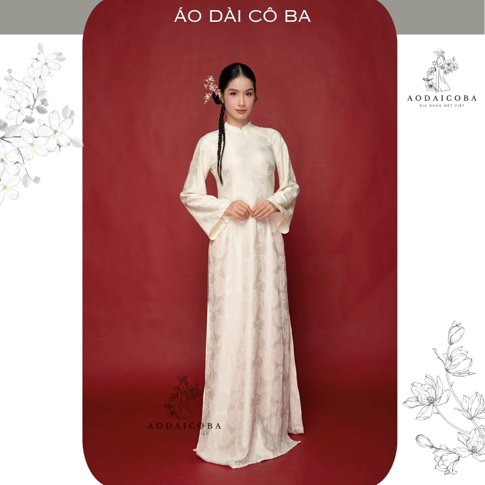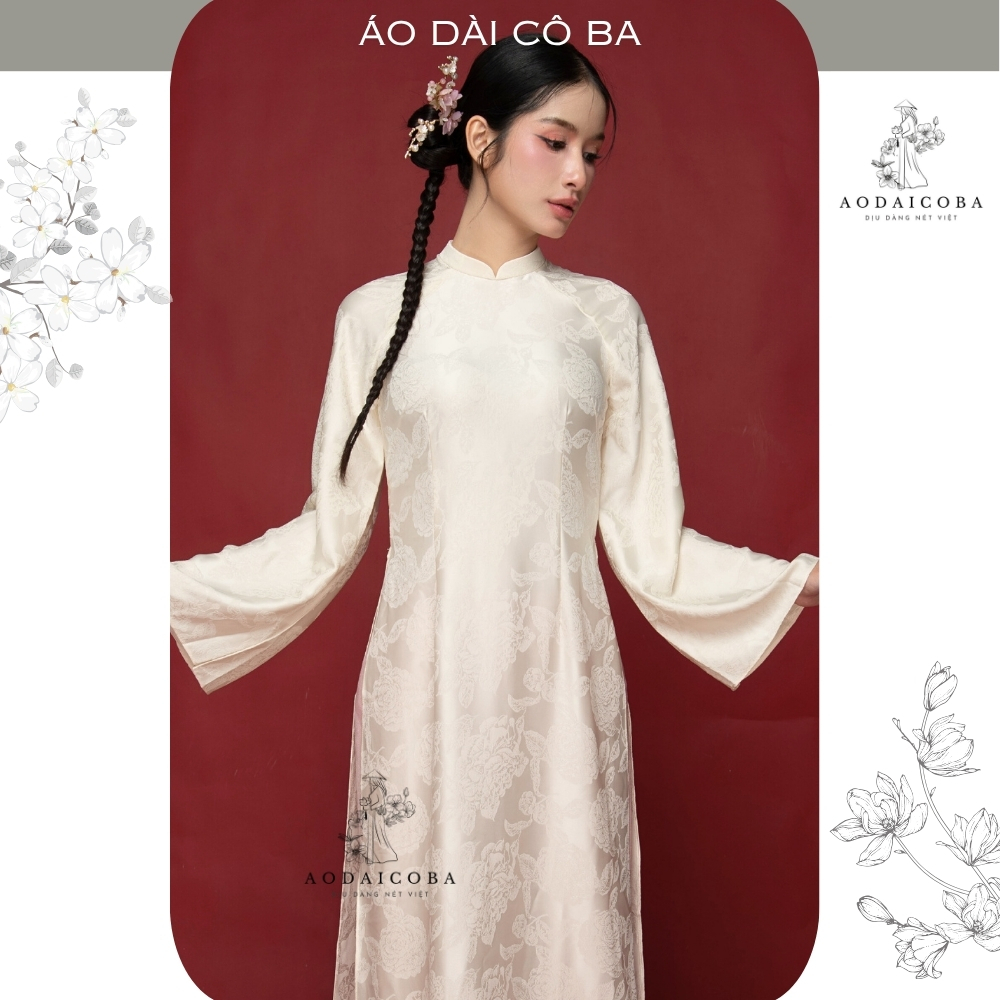 Áo Dài Tiểu Vũ Form Truyền Thống Cách Điệu Tay Loe Dài, Kèm Charm Hoa Đá Cao Cấp Phù Hợp Mặc Lễ, Dạm Ngõ,.- Áo Dài Cô Ba