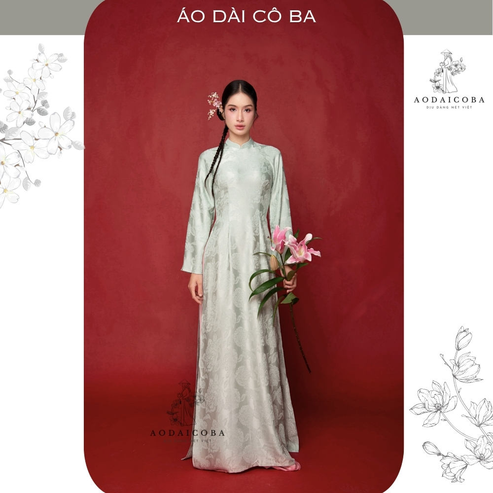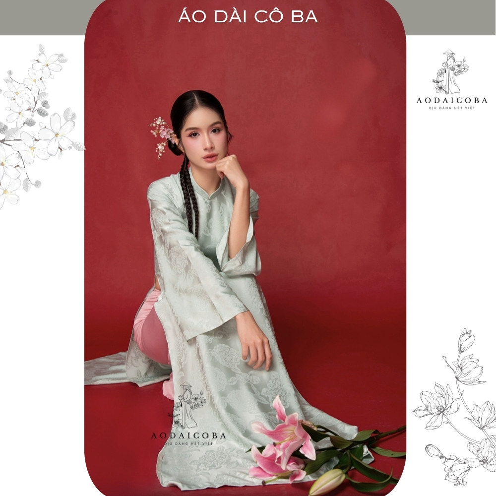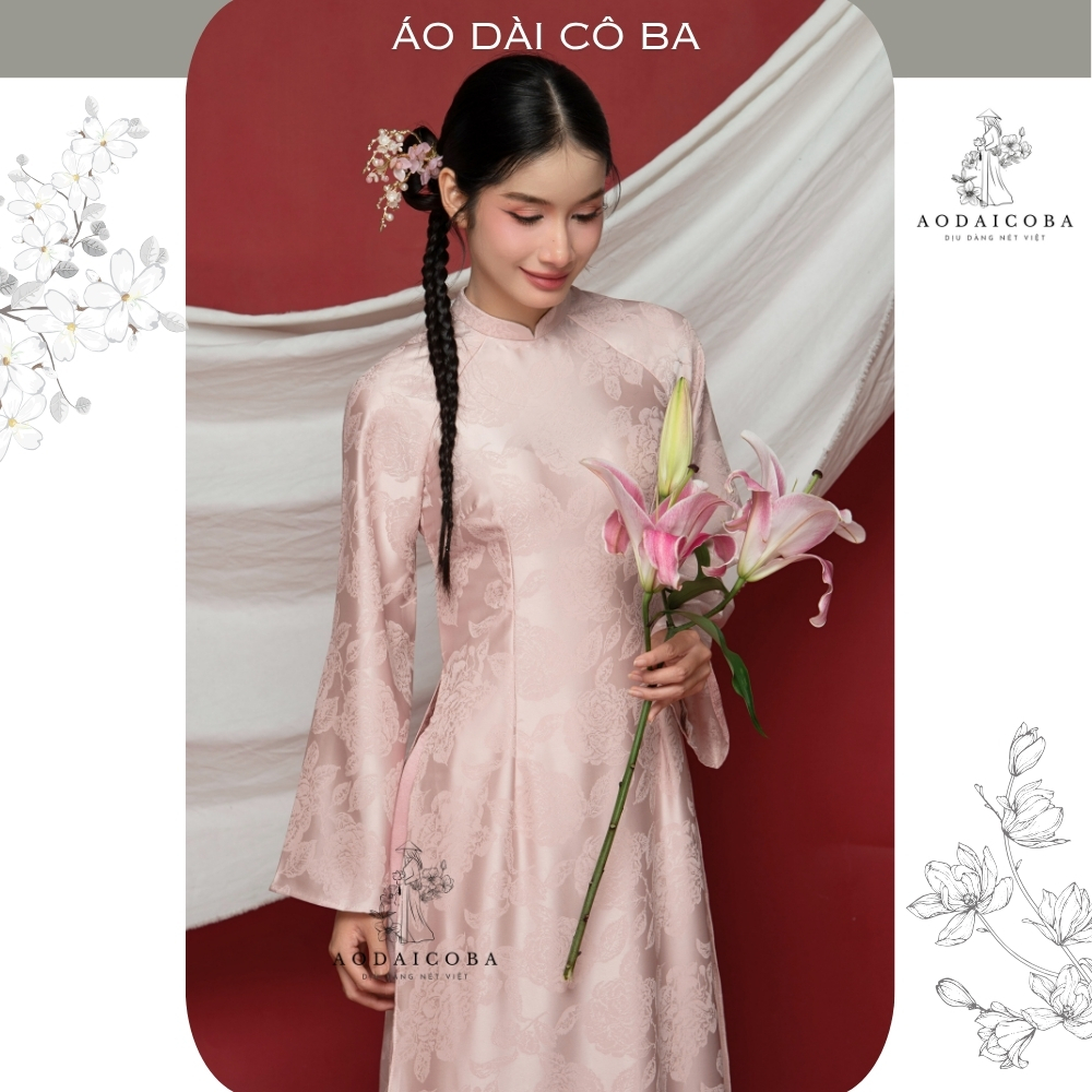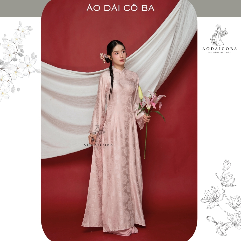 Áo Dài Tiểu Vũ Form Truyền Thống Cách Điệu Tay Loe Dài, Kèm Charm Hoa Đá Cao Cấp Phù Hợp Mặc Lễ, Dạm Ngõ,.- Áo Dài Cô Ba