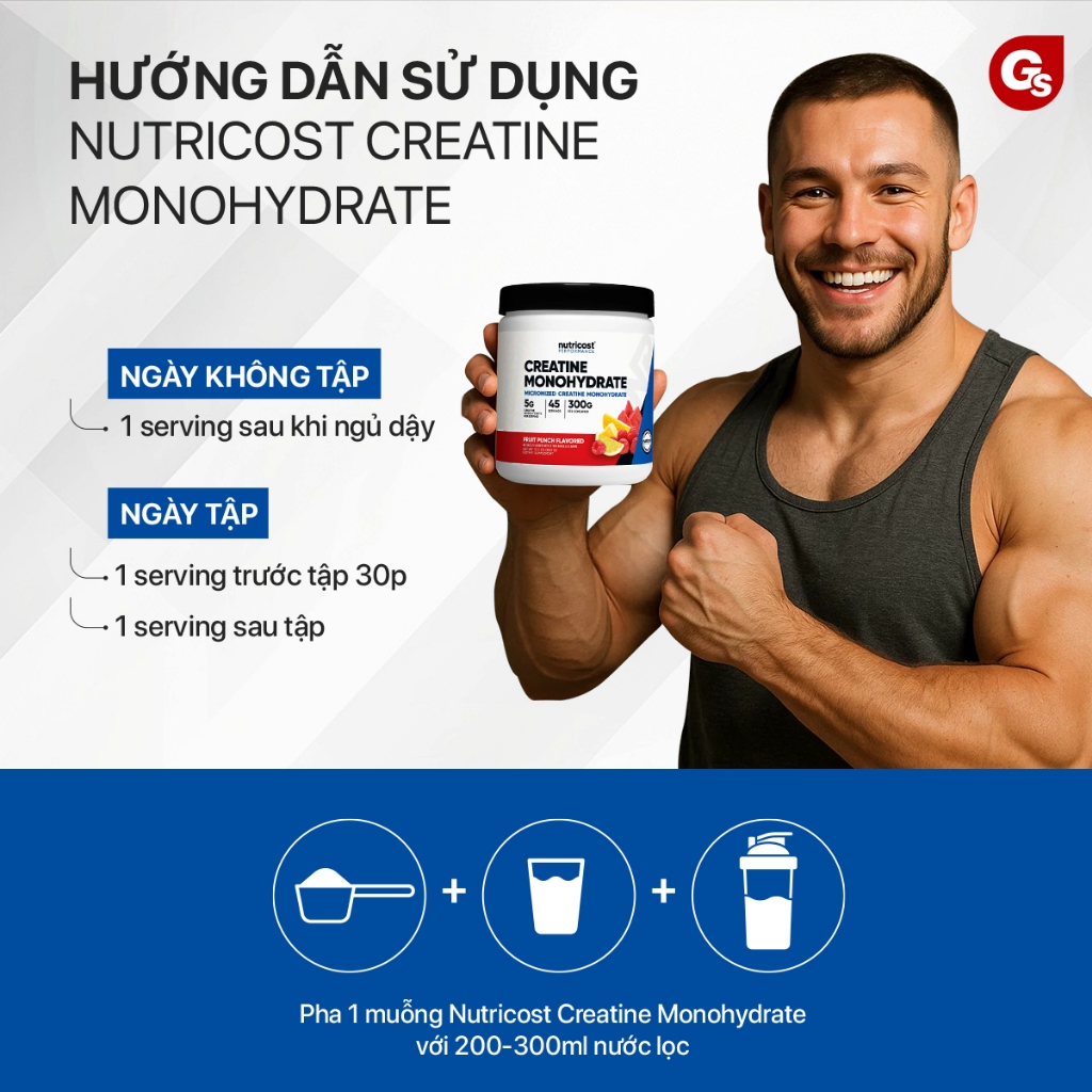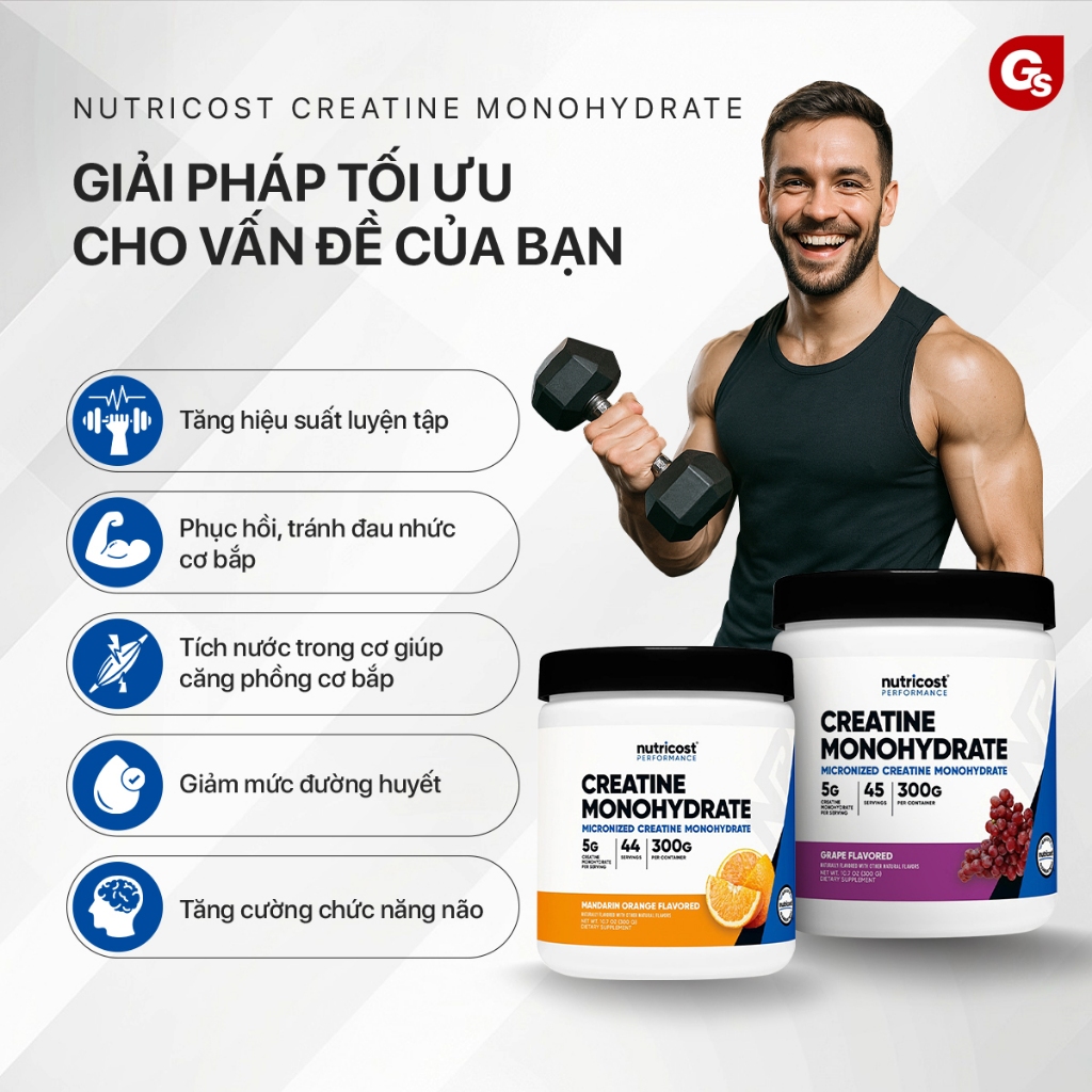Bột Nutricost Creatine Monohydrate Powder Micronized, bột creatine tinh khiết - Gymstore