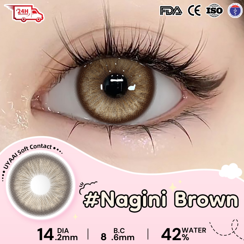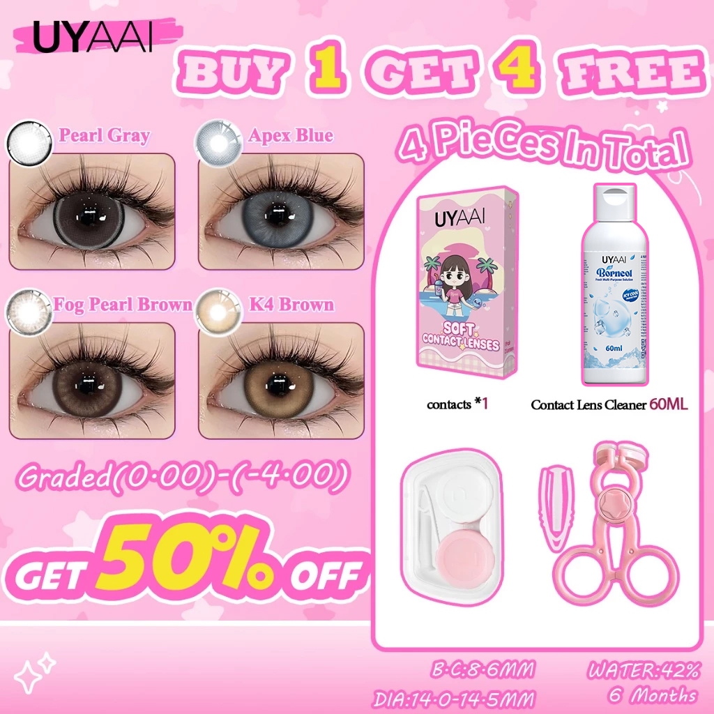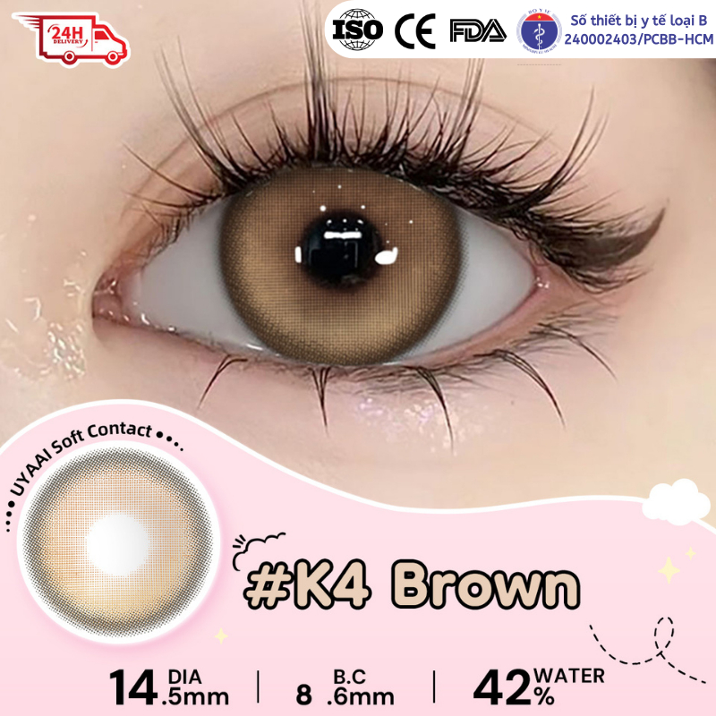 [Mua 1 được 4] Kính Áp tròng MCK1 UYAAI K4 Brown 0 ~ 4 độ 1 cặp Ống kính+Ngâm nước+Vỏ ống kính+Thiết bị hỗ trợ mắt