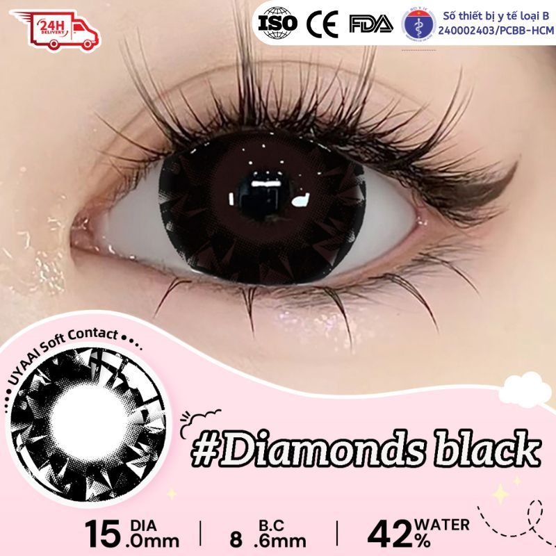 UYAAI Kính Áp tròng MCK1 Đen Màu Đường Kính Lớn 15.0mm Sản Phẩm Mới Khuyến Nghị Mắt Lớn Bé Gái 6 Tháng
