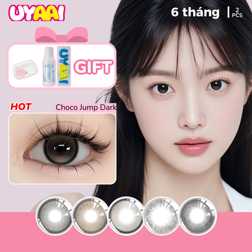 【 Mua 1 được 3 】 UYAAI Kính Áp tròng MCK1 0,00 Độ (1 cặp + 60ml Nước Ngâm + 1 khay) lens Mắt Choco Jump nâu đen