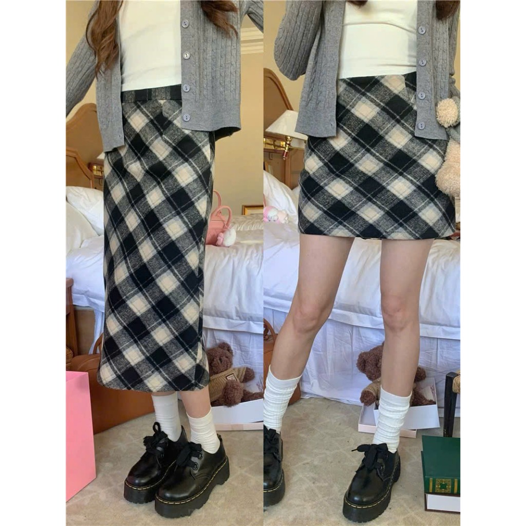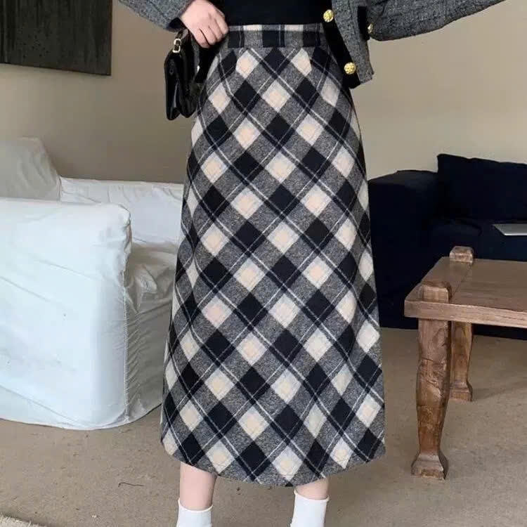 [Bigsize]Chân váy 05 kẻ caro dáng dài basic cạp cao, khoá kéo, chất dạ che khuyết điểm đùi to đủ size 55kg đến 100kg