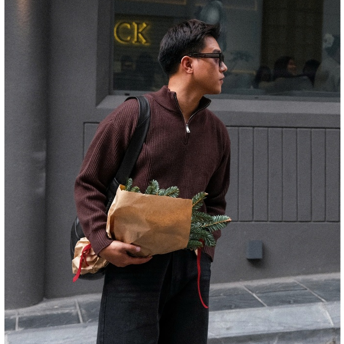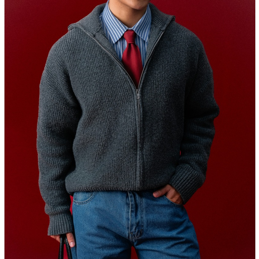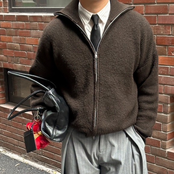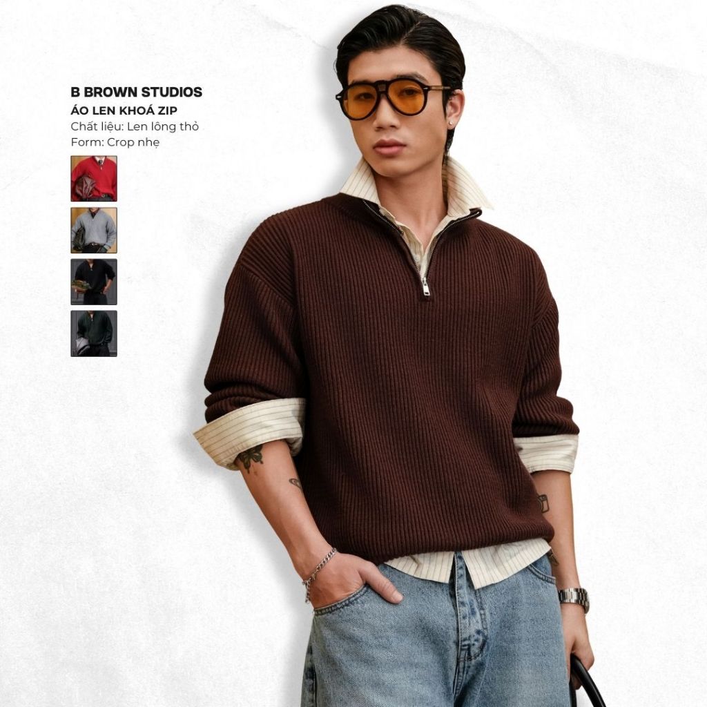 Áo Len Khóa Zip B Brown - Chất Liệu Len Dày Dặn, Form Crop Tôn Dáng, Dùng Hàng Ngày