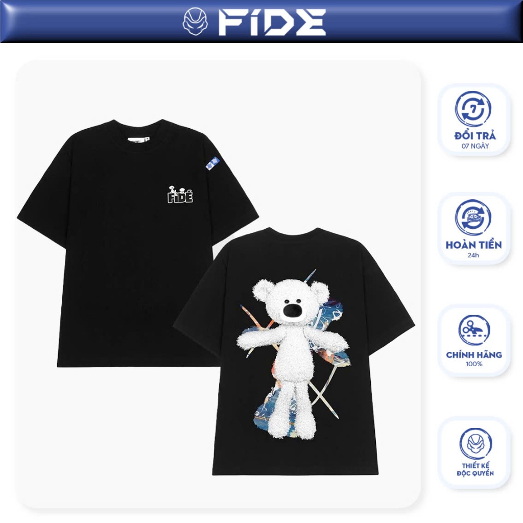 Áo thun FIDE TEDDY phông unisex form rộng local brand nam nữ cổ tròn oversize Đính gấu-AT71(TẶNG GẤU