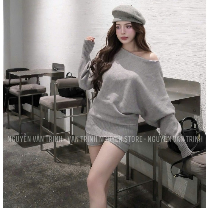 Set Quần Áo Nữ, Set Len Gồm Áo Len Trễ Vai Sexy + Quần Sooc Len Nhẹ Nhàng Chuẩn Hàng QCCC L1, Bon Bon Collection