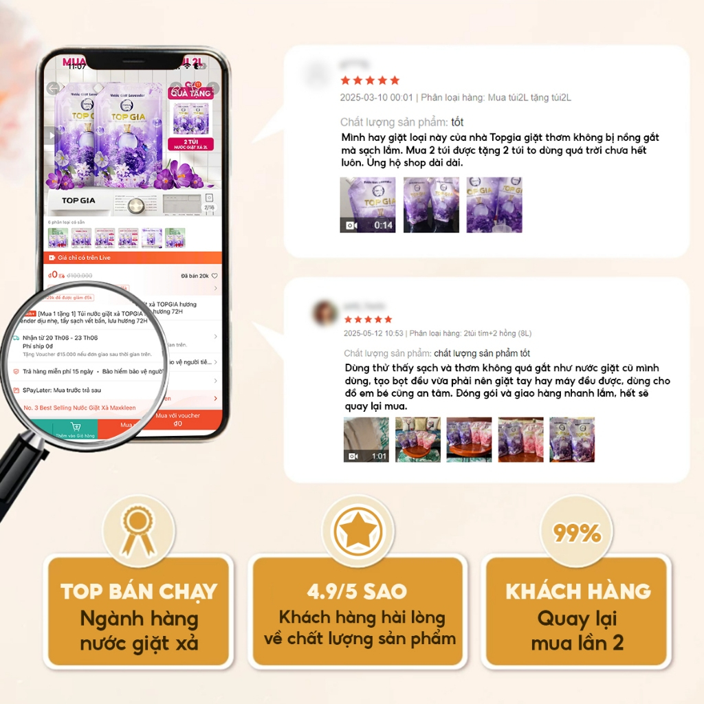Nước giặt xả TOPGIA hương lavender dịu nhẹ, tẩy sạch vết bẩn, lưu hương 72H, an toàn lành tính
