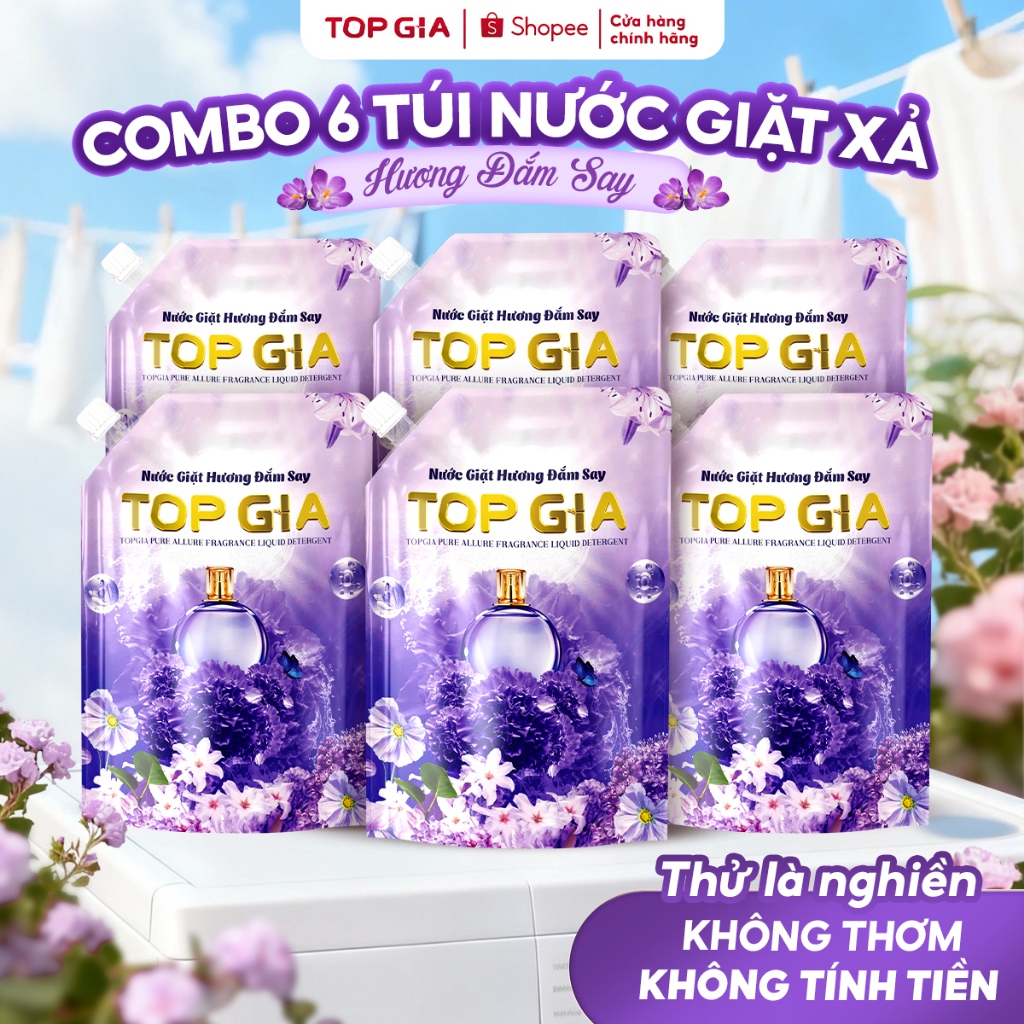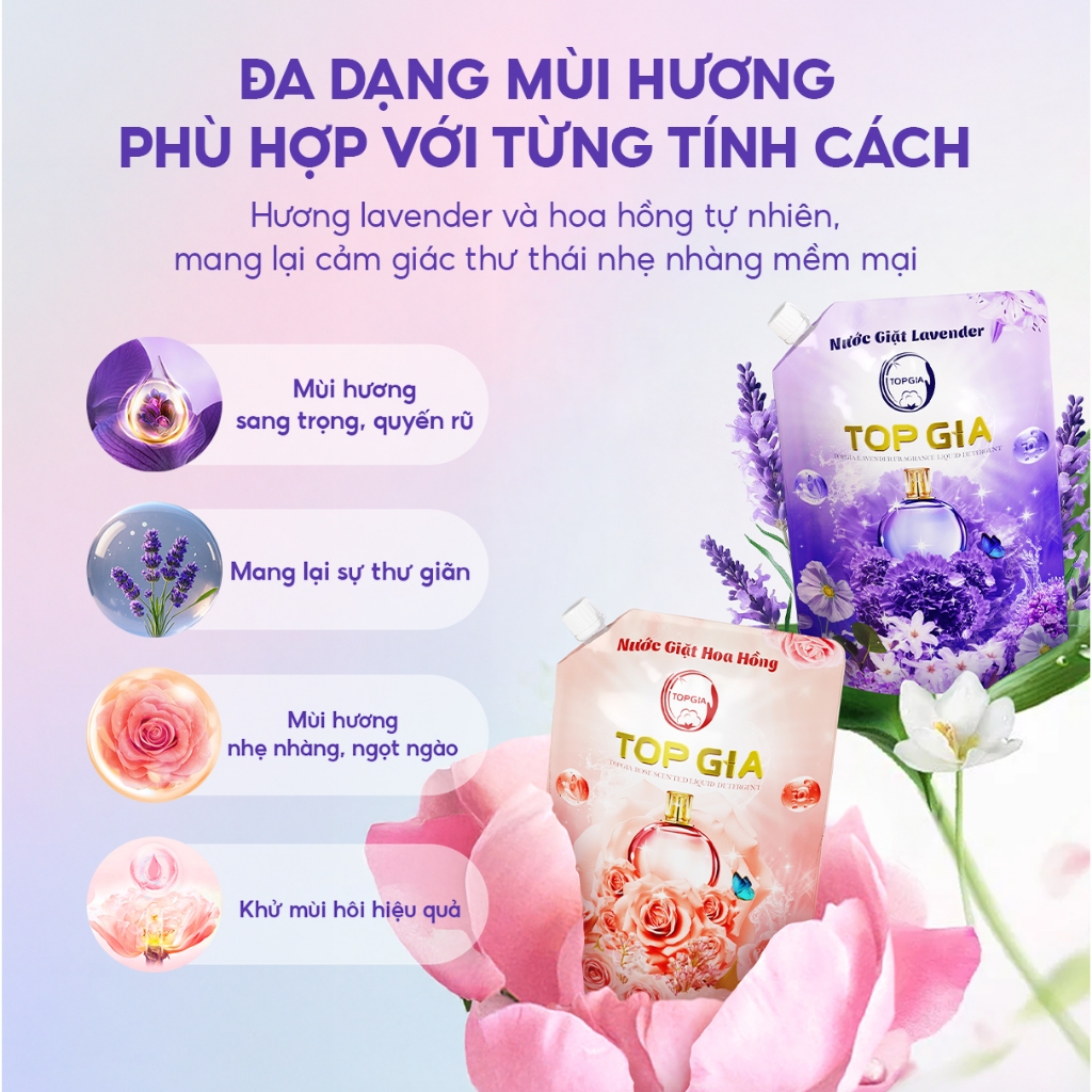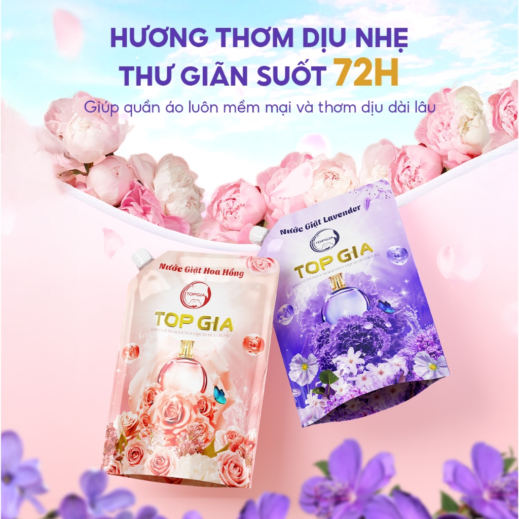Nước Giặt TOPGIA Hương Lavender, Hoa Hồng Dịu Nhẹ An Toàn Cho Da Lưu Hương 72H Tẩy Sạch Vết Bẩn