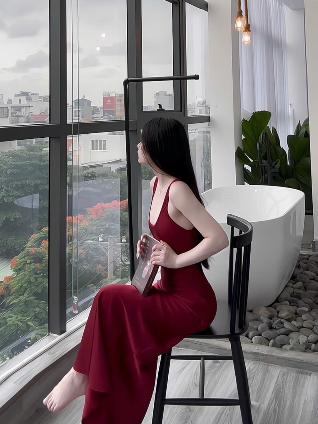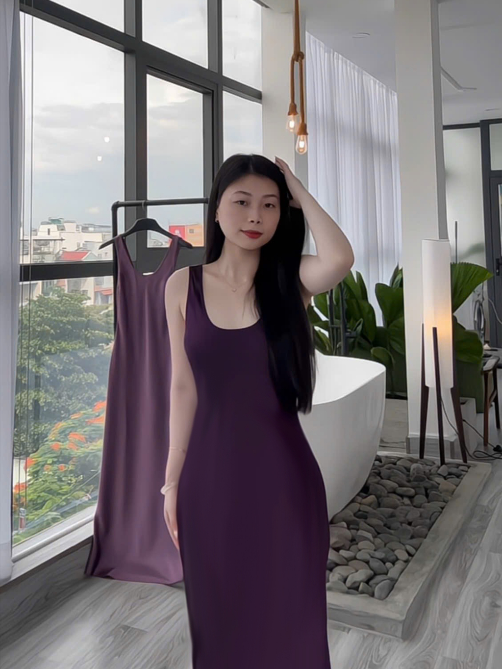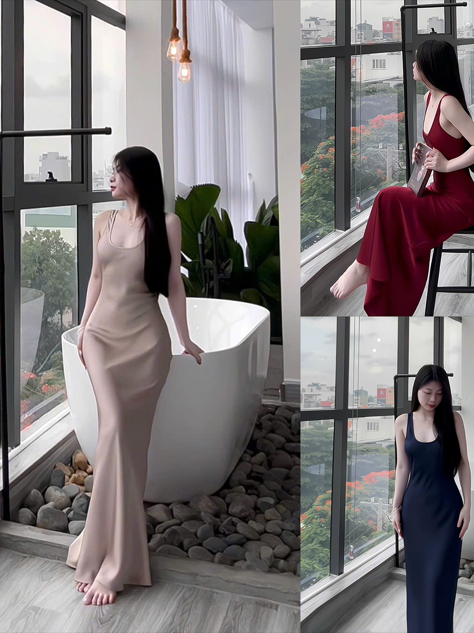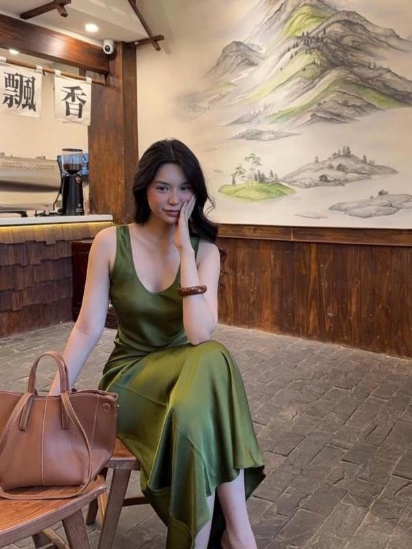 Đầm Lụa Cổ U Dây Mảnh Form Dài,Váy Lụa Hàn Châu 1 Lớp Không Mút,Không Dây Kéo Tôn Dáng