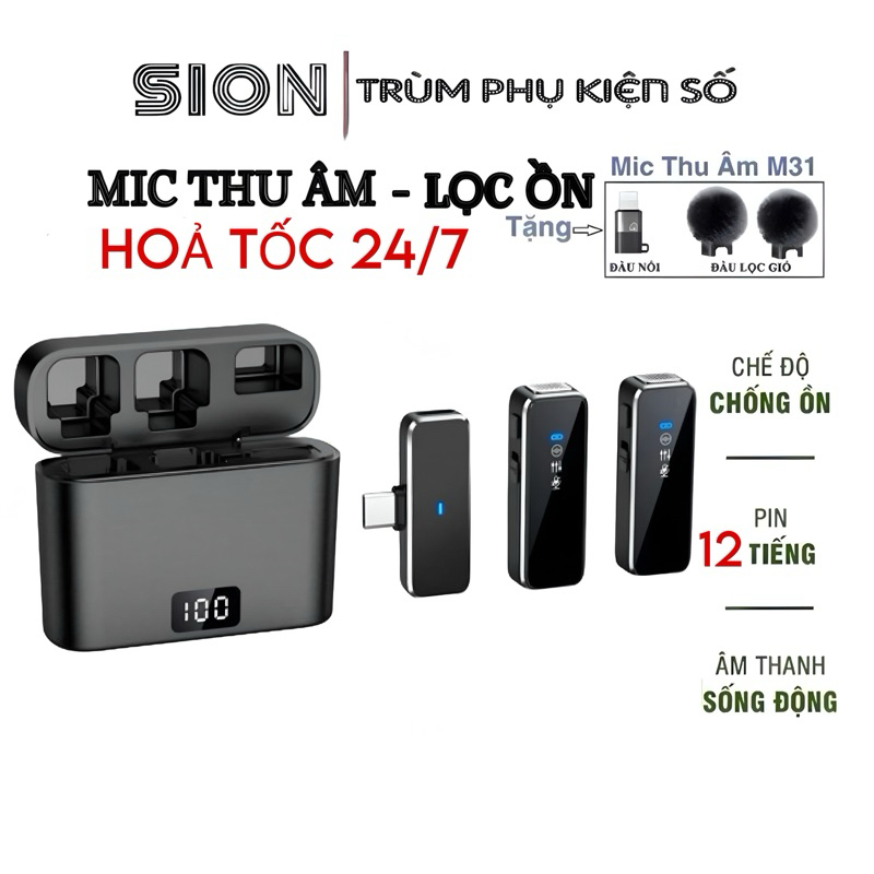 Mic SIVIR M31 Thu Âm Không Dây Điện Thoại Hỗ Trợ Lọc Ồn 90%