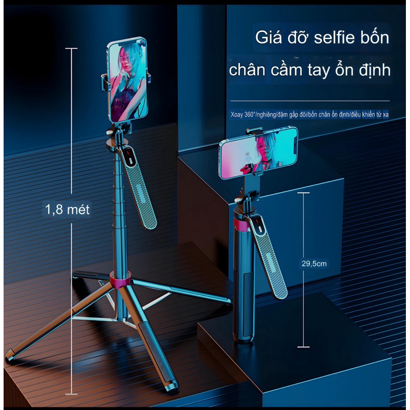 Gậy Chụp Ảnh 4 Chân P185-Gậy Chụp Hình Cầm Tay Tặng Kèm Remote có Chiều Dài Sử Dụng 30-180cm