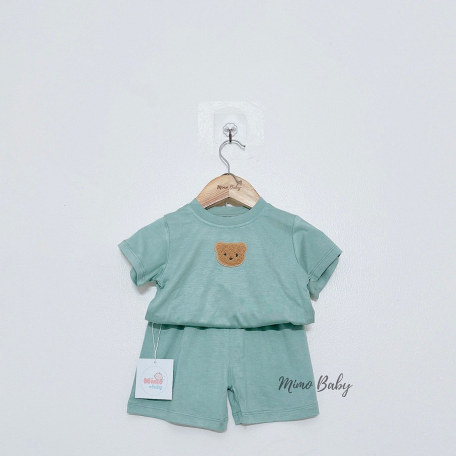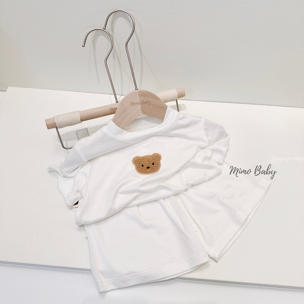 Bộ quần áo thun lạnh cộc tay đính gấu thêu đáng yêu cho bé QA78 Mimo Baby