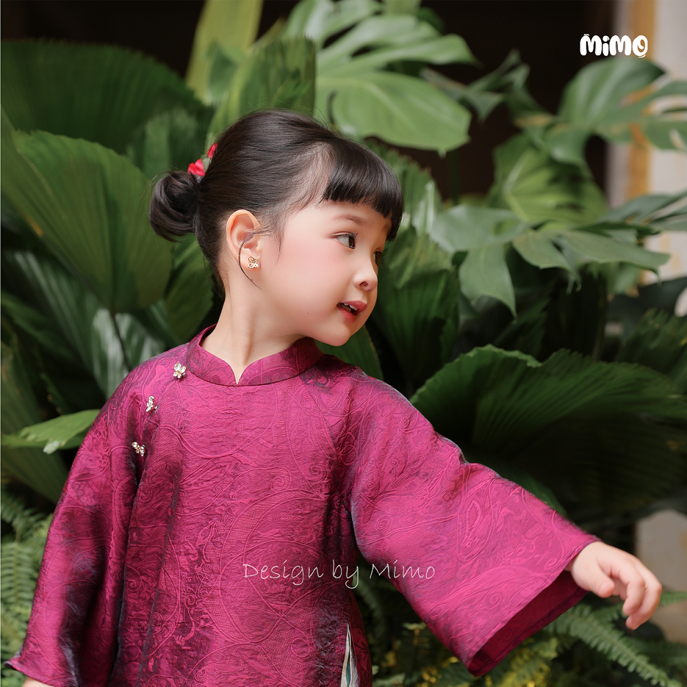Áo Dài Lụa Cao Cấp 4 Tà – Hồng Tím / Hồng Vàng / Xanh / Tím Mimo AD5-247 Mimo Baby