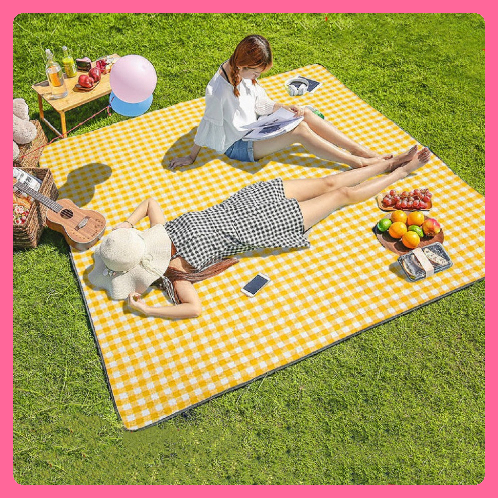 Thảm Dã Ngoại Picnic Hoạ Tiết, Chống Thấm Thích Hợp Du Lịch Chụp Ảnh Cắm Trại Caro Gấp Gọn