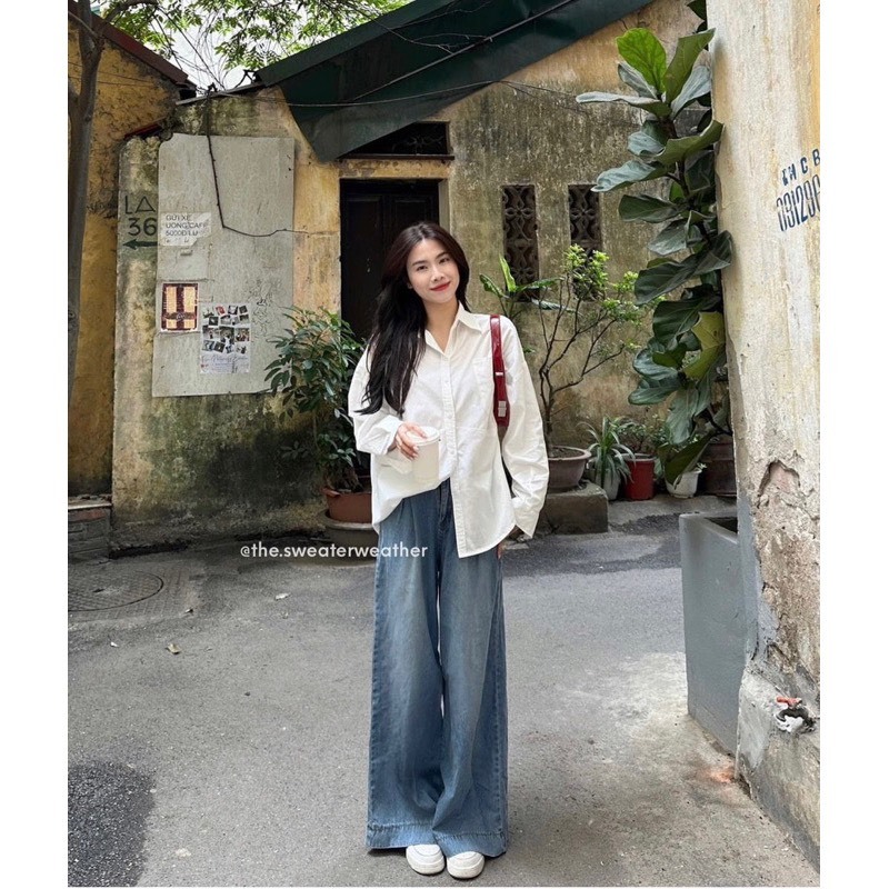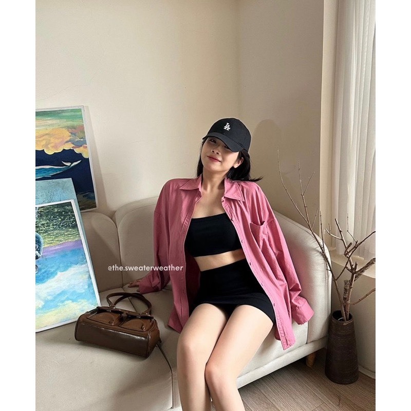 (Sẵn/Video) Áo sơ mi chất thô mềm form rộng 1 túi phong cách Hàn Quốc