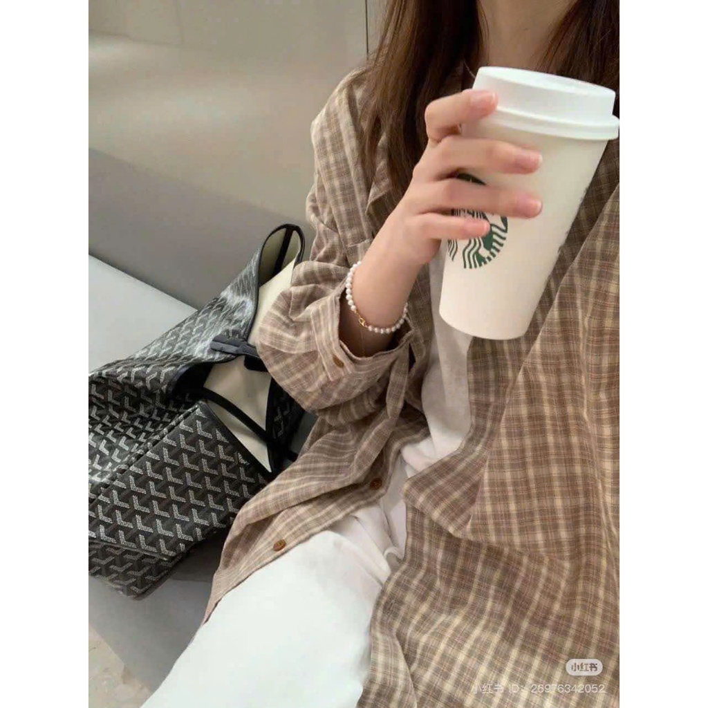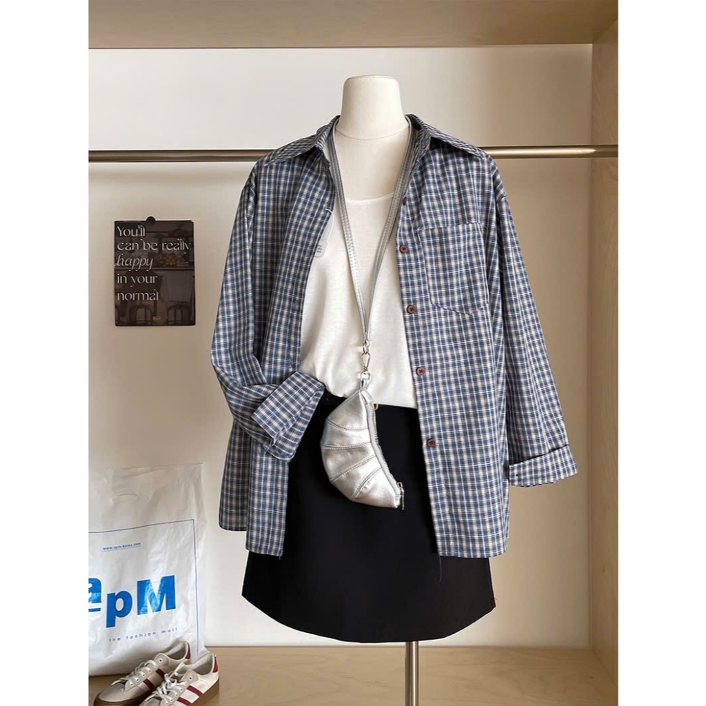 Áo sơ mi cổ điển KẺ SỌC NHỎ dài tay kiểu Hàn Quốc đơn giản dáng rộng dành cho nữ