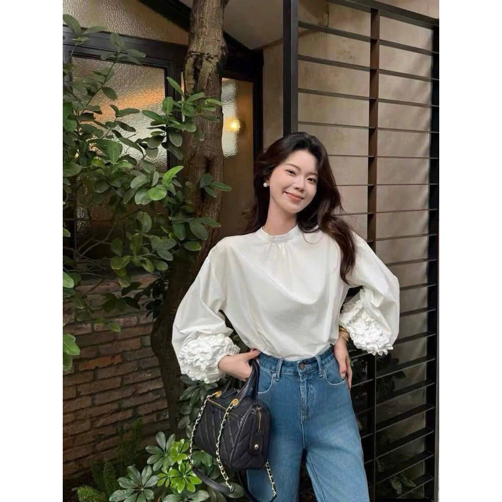 [Hàng L1] Áo Sơ Mi Trắng Cổ Tròn Tay Phồng Viền Bèo Tầng, Form Rộng Hàn Quốc A6187