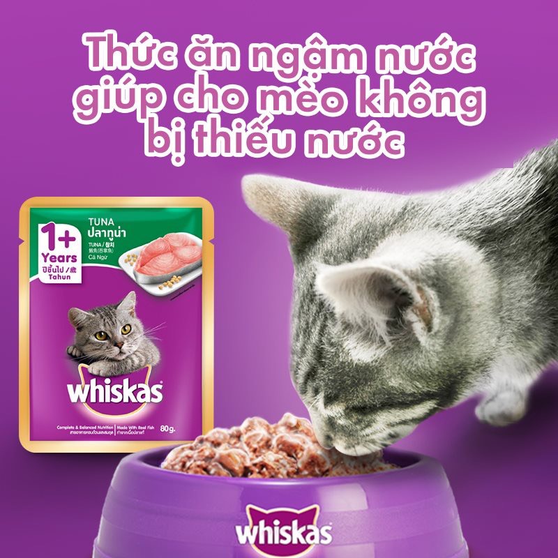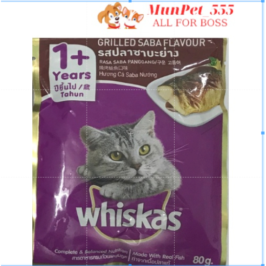 Pate Whiskas các vị cá biển,thu,ngừ dành cho mèo lớn 80g