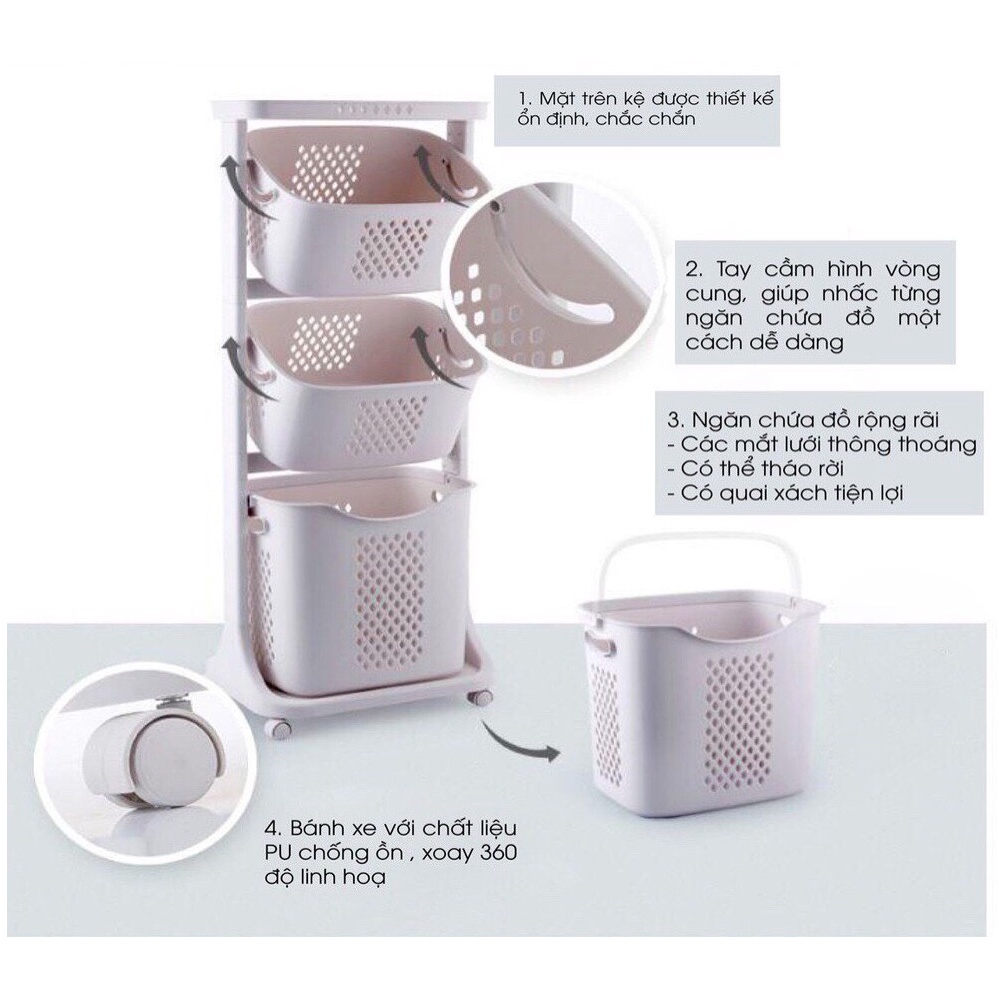 kệ để đồ đa năng, kệ bánh xe nhà tắm xoay 360 độ nhựa Việt Nhật cao cấp 5567