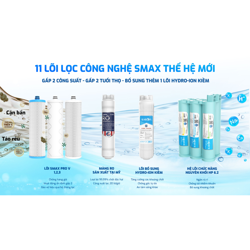 Máy lọc nước nóng lạnh RO Mỹ 11 lõi Karofi KAD-D66S Pro - Bổ sung lõi Hydro ion Kiềm - Lắp đặt miễn phí toàn quốc