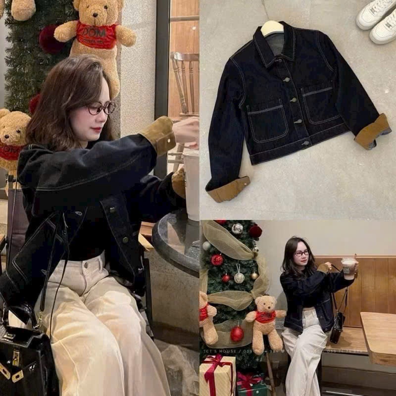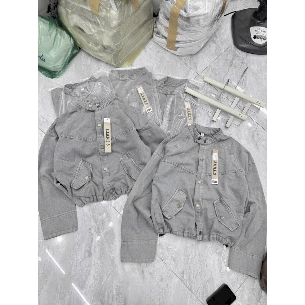 Áo Khoác Jeans Nữ Phối Túi Hộp Cổ Tàu Màu Xám Có Dây Rút Gấu Áo Dáng Lỡ Form Rộng Phong Cách Cá Tính