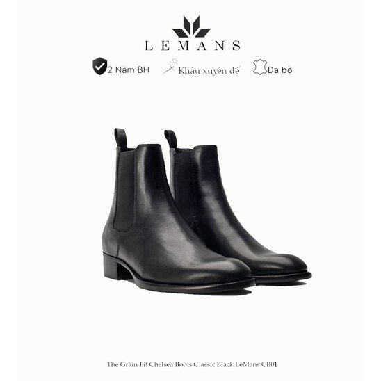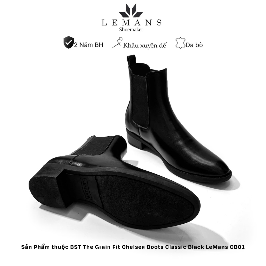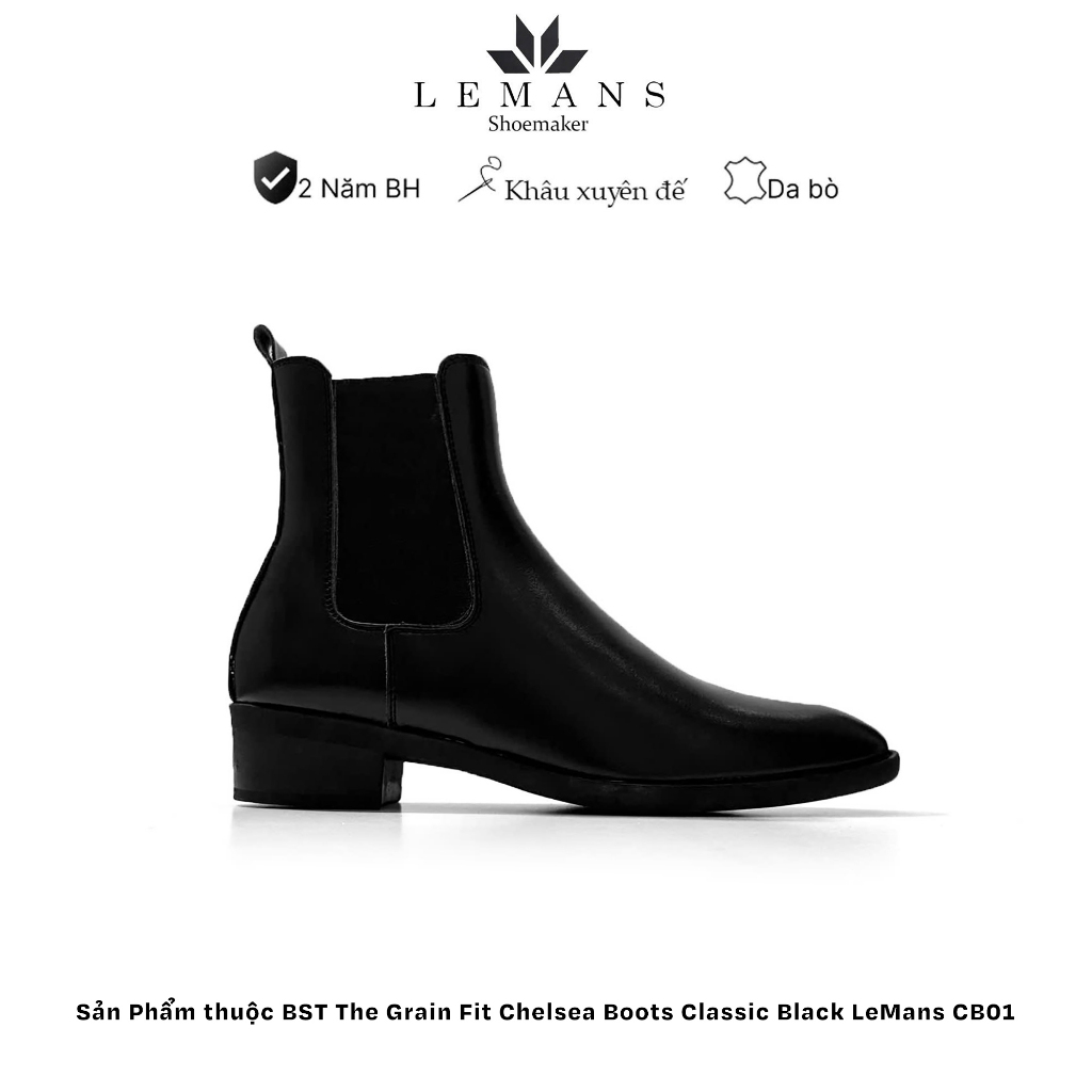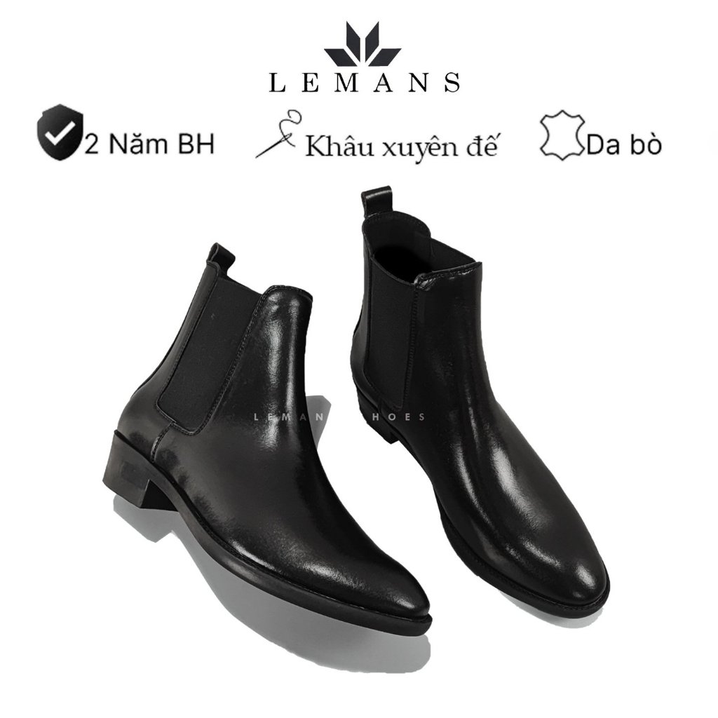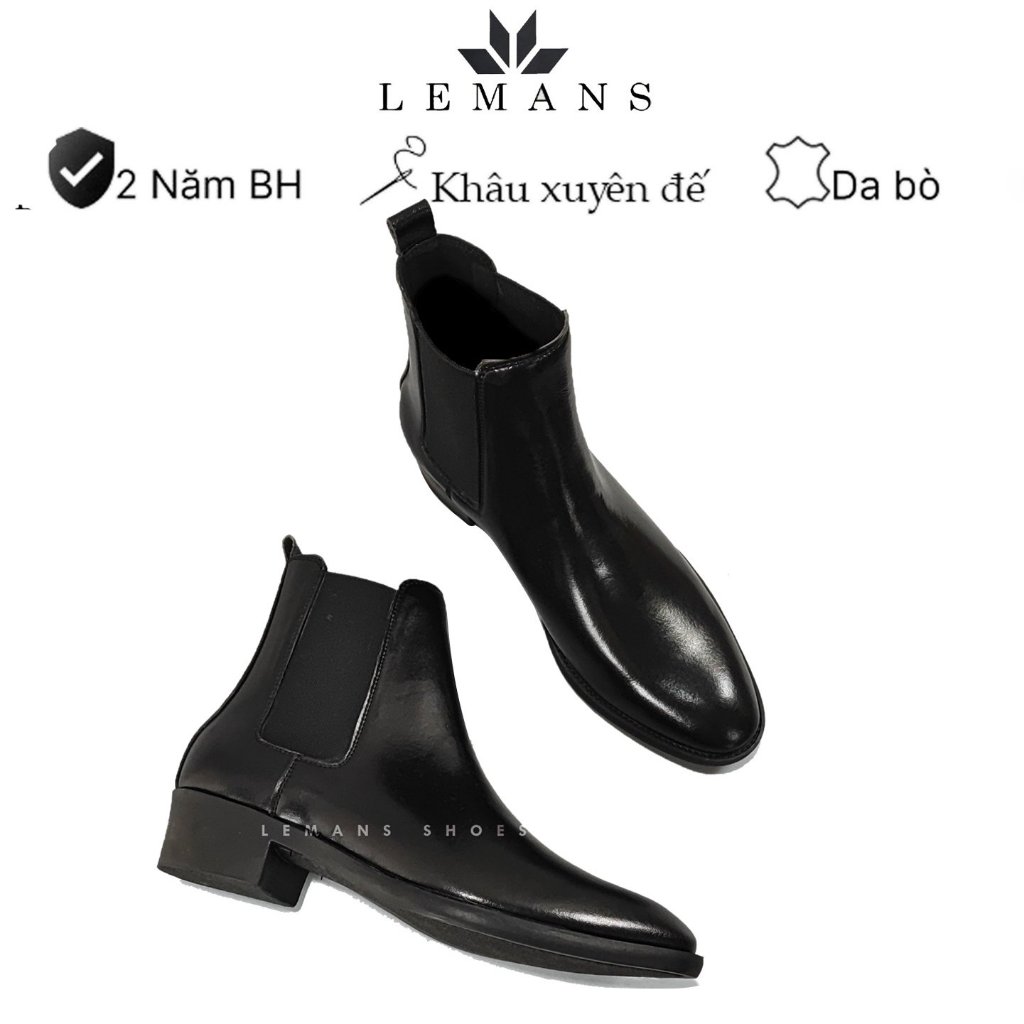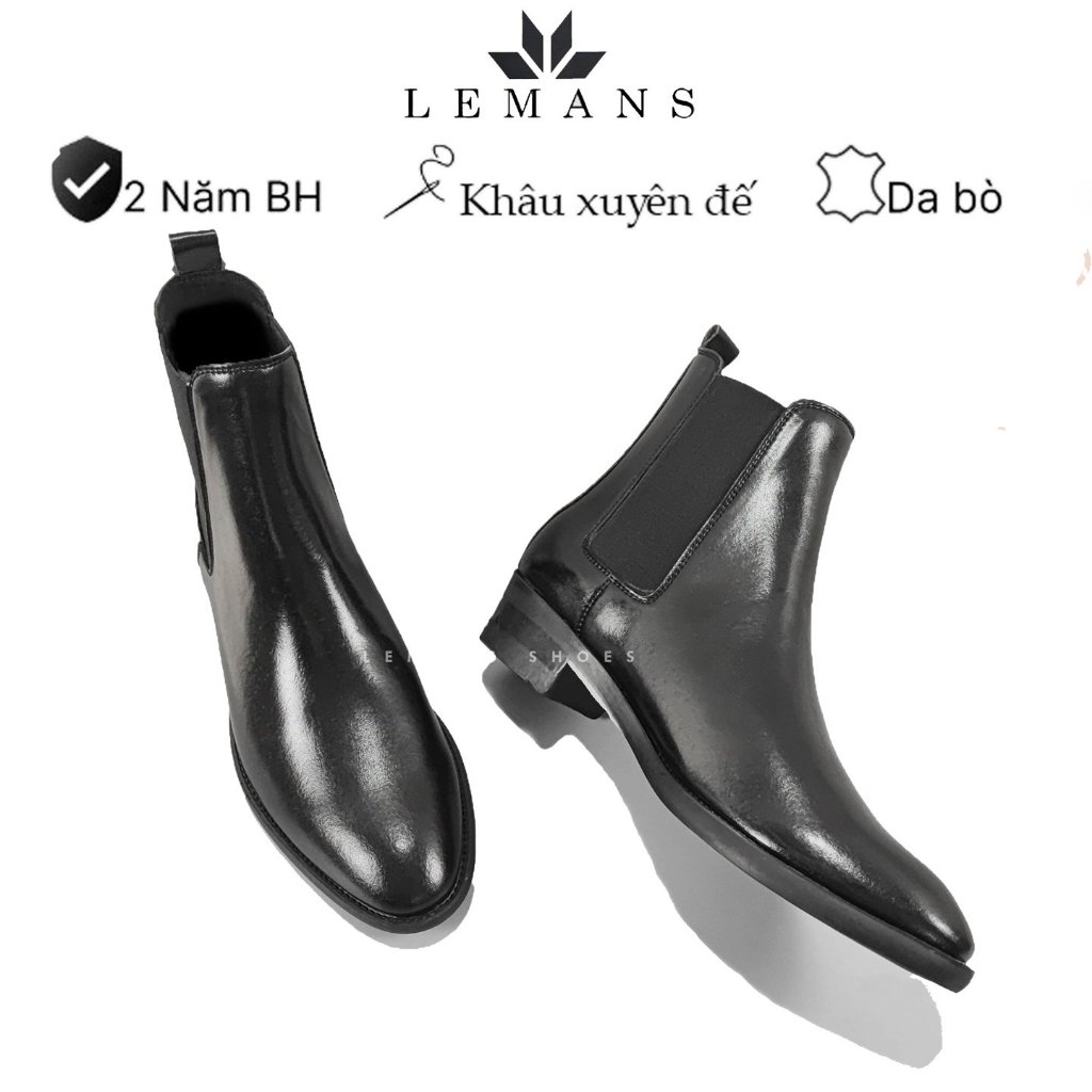 Giày da bò Chelsea Boots Classic LEMANS CB01 đế gót cao 5cm độc quyền LEMANS ống cao 18cm, Bảo Hành 24 tháng