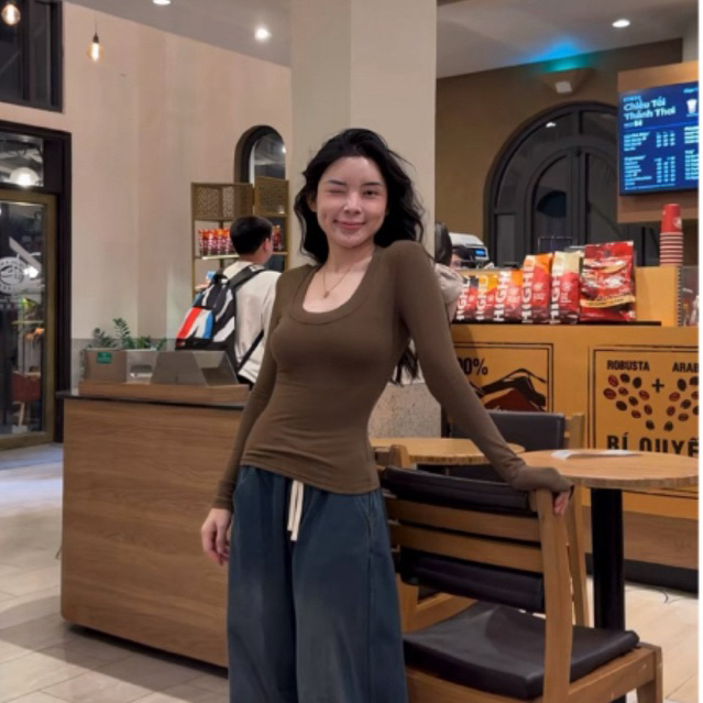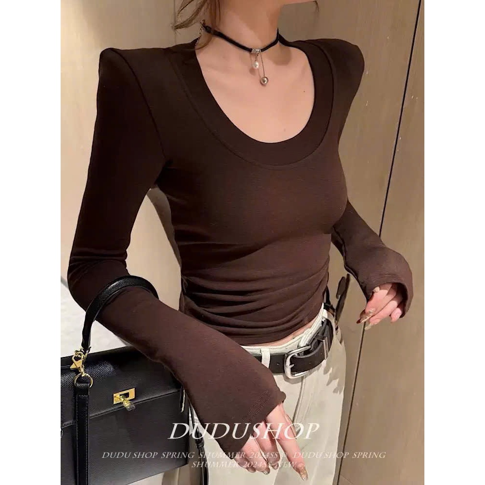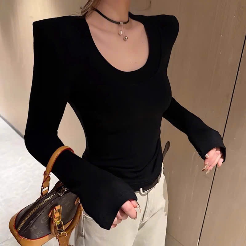 Áo Giữ Nhiệt Nữ, Áo Thun Dài Tay Cổ U Lót Lông Cao Cấp Cotton, Có Độn Vai, Thắt Eo Tôn Dáng TK338_ NGỌC BÍCH BOUTIQUE