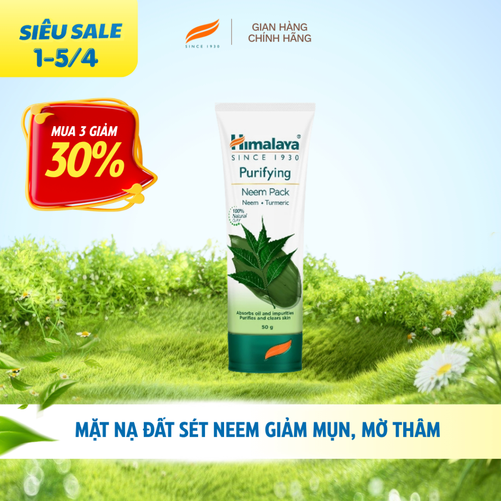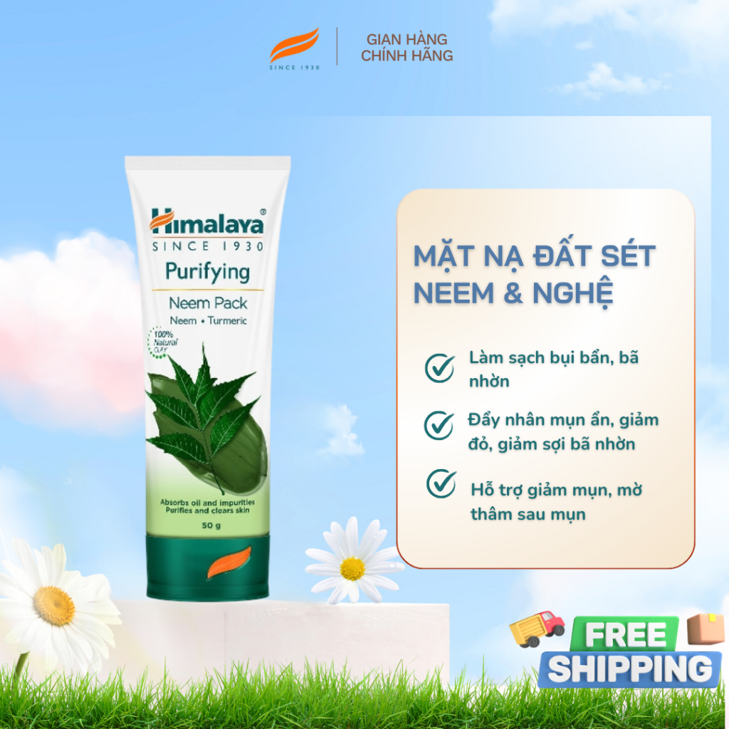 Mặt nạ đất sét lá neem loại bỏ mụn, bã nhờn và mờ thâm Himalaya Neem Face Pack 50ml