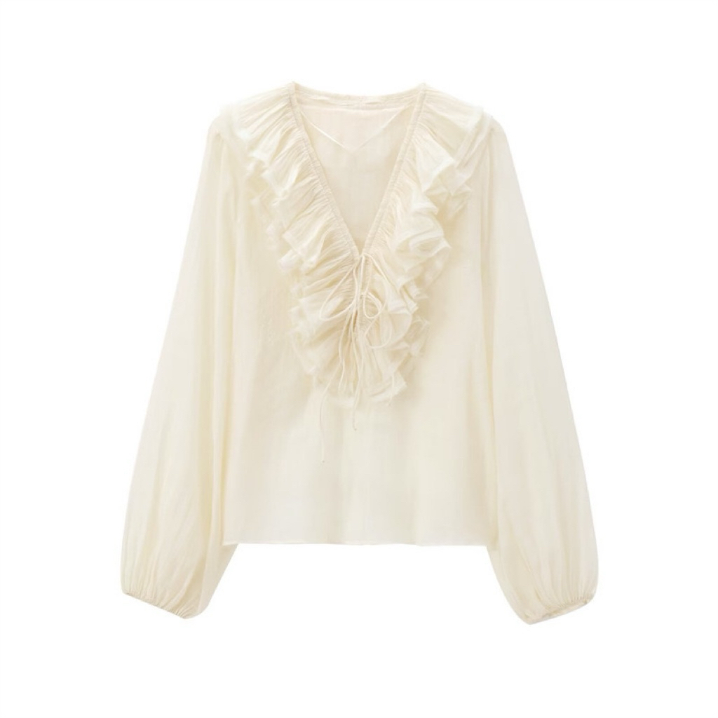 Áo Sơ Mi Bèo Ngực Cách Điệu, Nữ Tính, Chất Tơ Mềm Mát, Kiểu Dáng Thanh Lịch