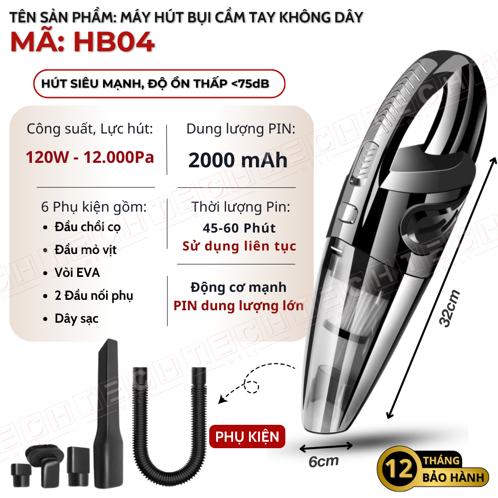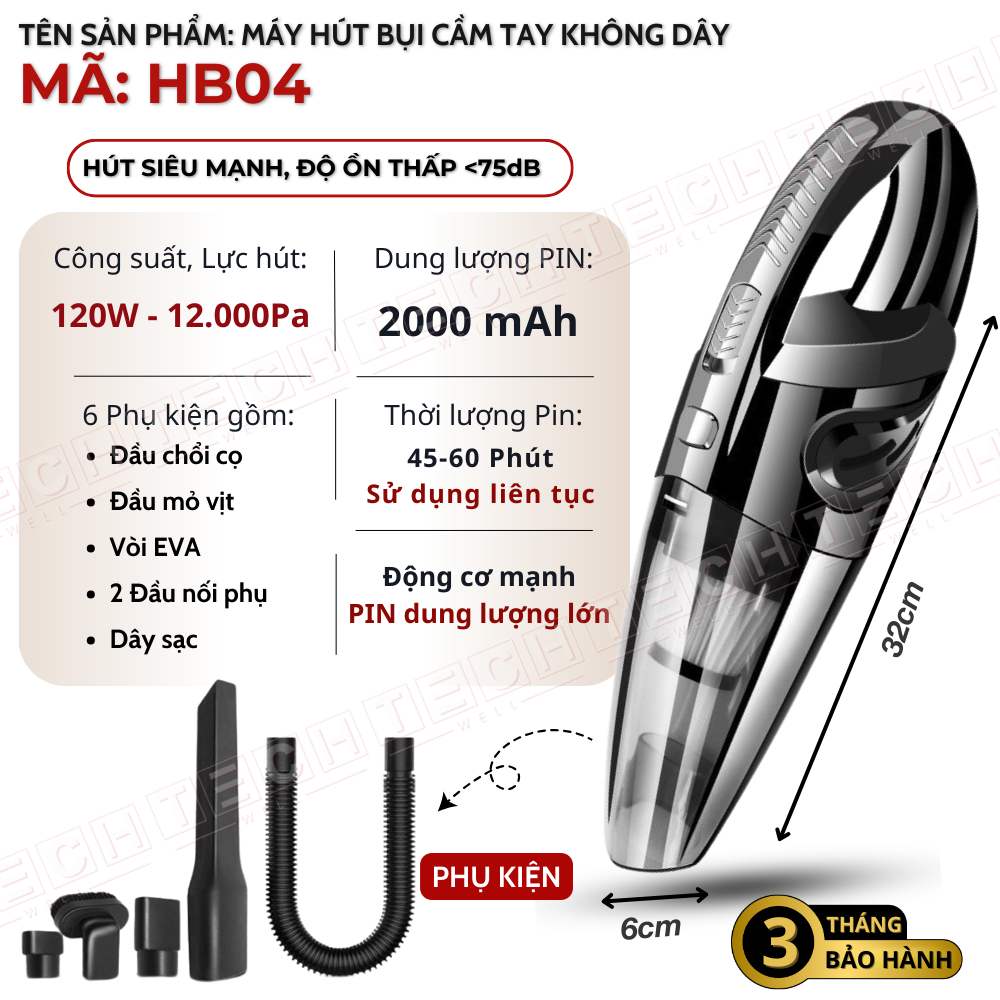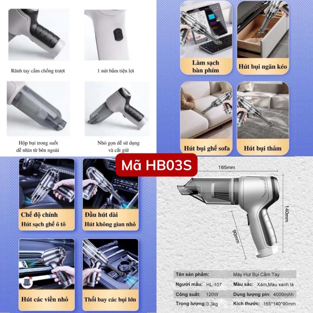 Máy hút bụi cầm tay không dây hút bụi giường nệm lực hút siêu mạnh 15000PA thiết kế nhỏ gọn