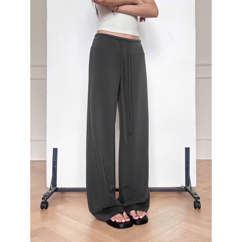 LA MIU - Quần suông nữ dài cạp trễ chất mì nỉ phối dây rút eo, không lộ, hack eo nhỏ, chân thẳng dài nữ Women H56