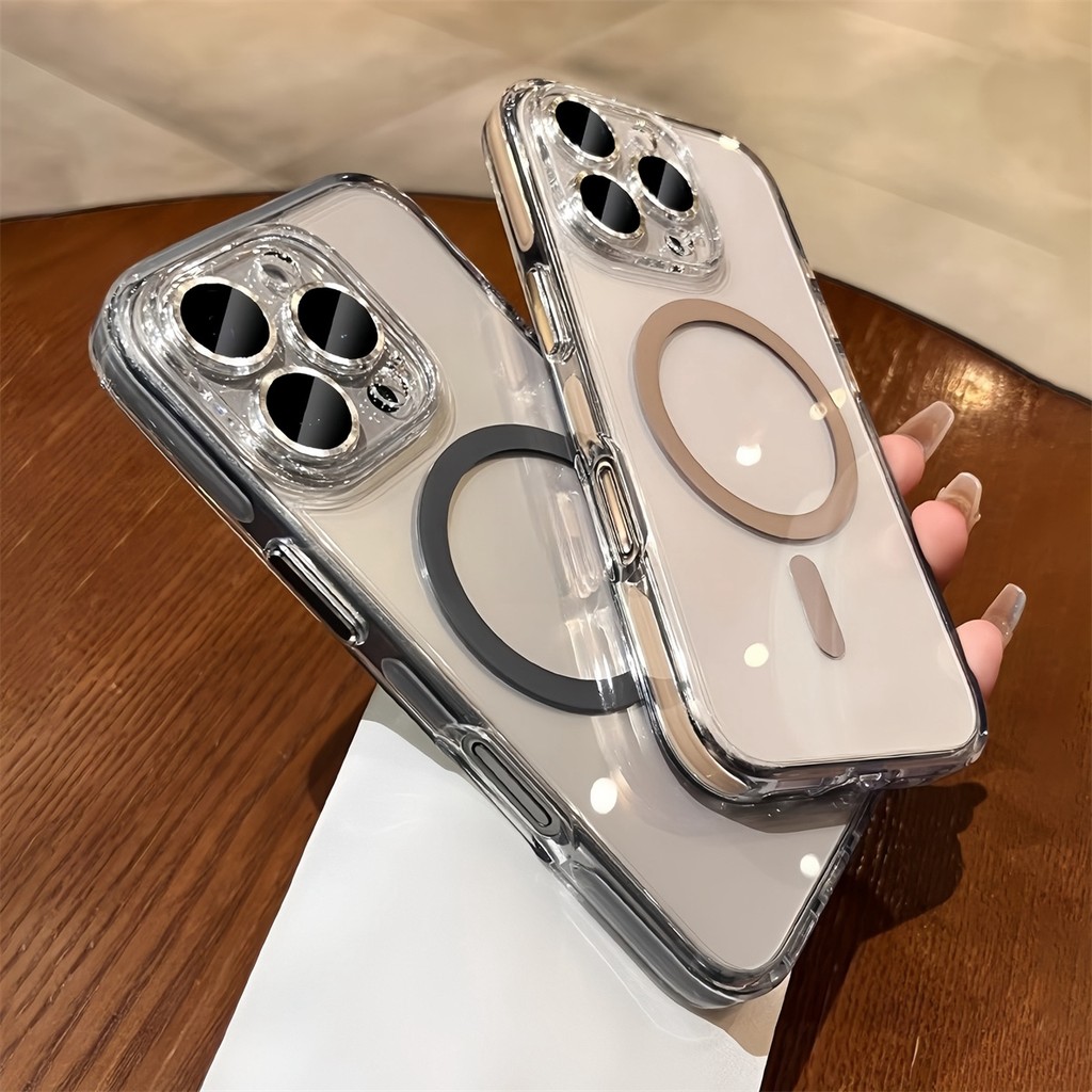 Ốp điện thoại từ tính trong suốt pha lê titan mới cho IPhone 16 Pro Max 13 14 15 Pro Max Plus Vỏ cứng PC mỏng có bảo vệ Camera