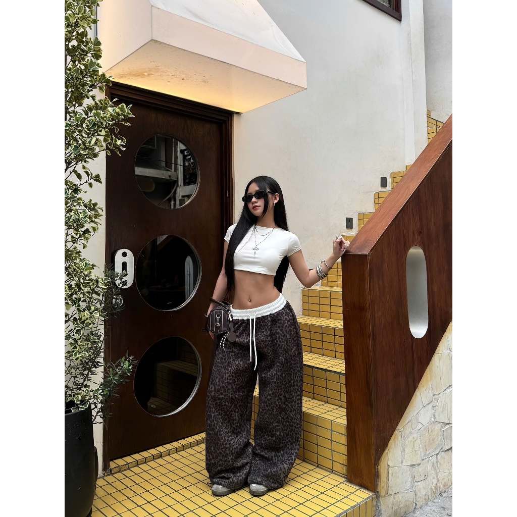 (NỈ BÔNG MỎNG) QUẦN FORM RỘNG LEOPARD ĐEN STUDIO 100% COTTON