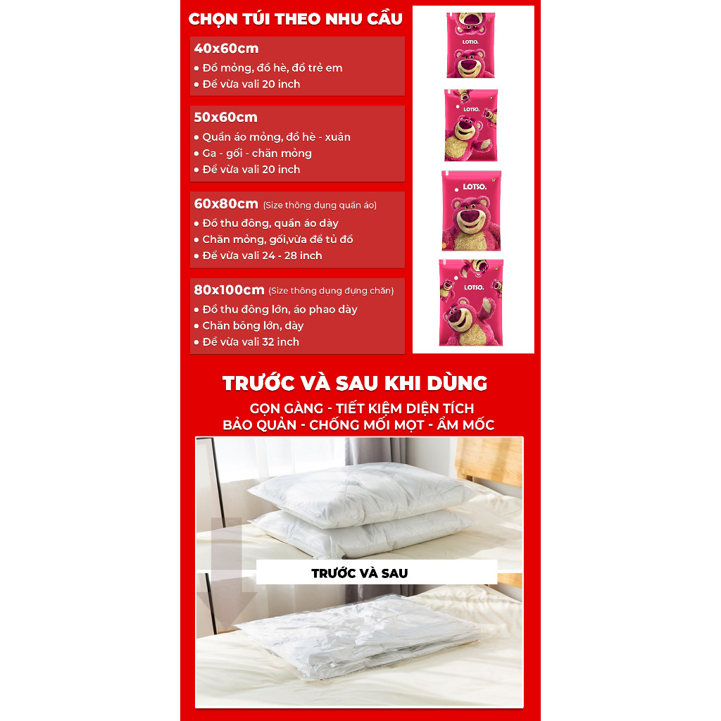 (Hoả Tốc HN 1 Giờ) Túi hút chân không đựng quần áo, chăn ga gối - Gọn gàng, chống ẩm mốc
