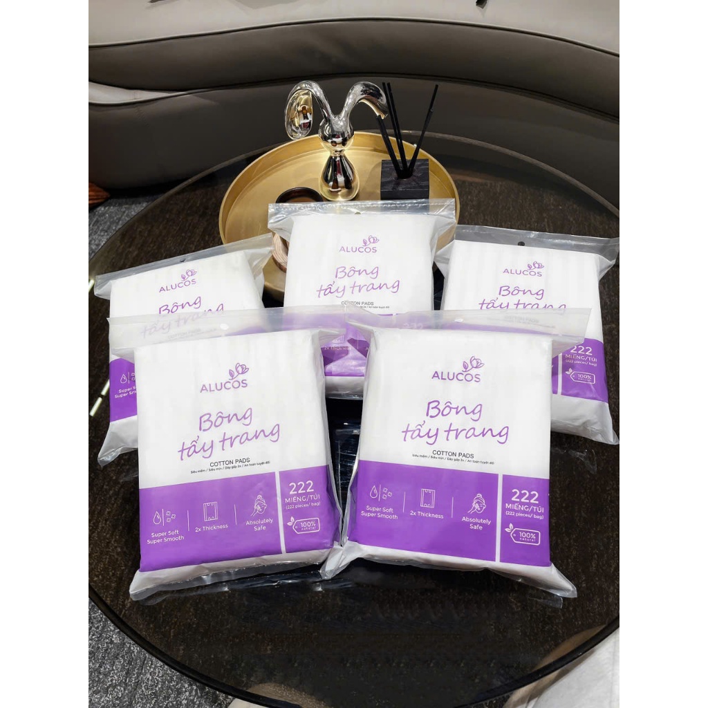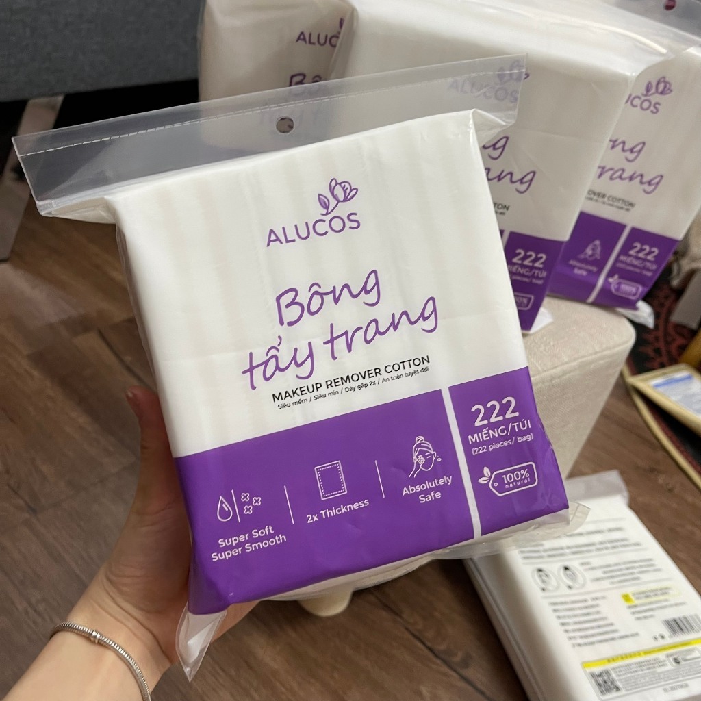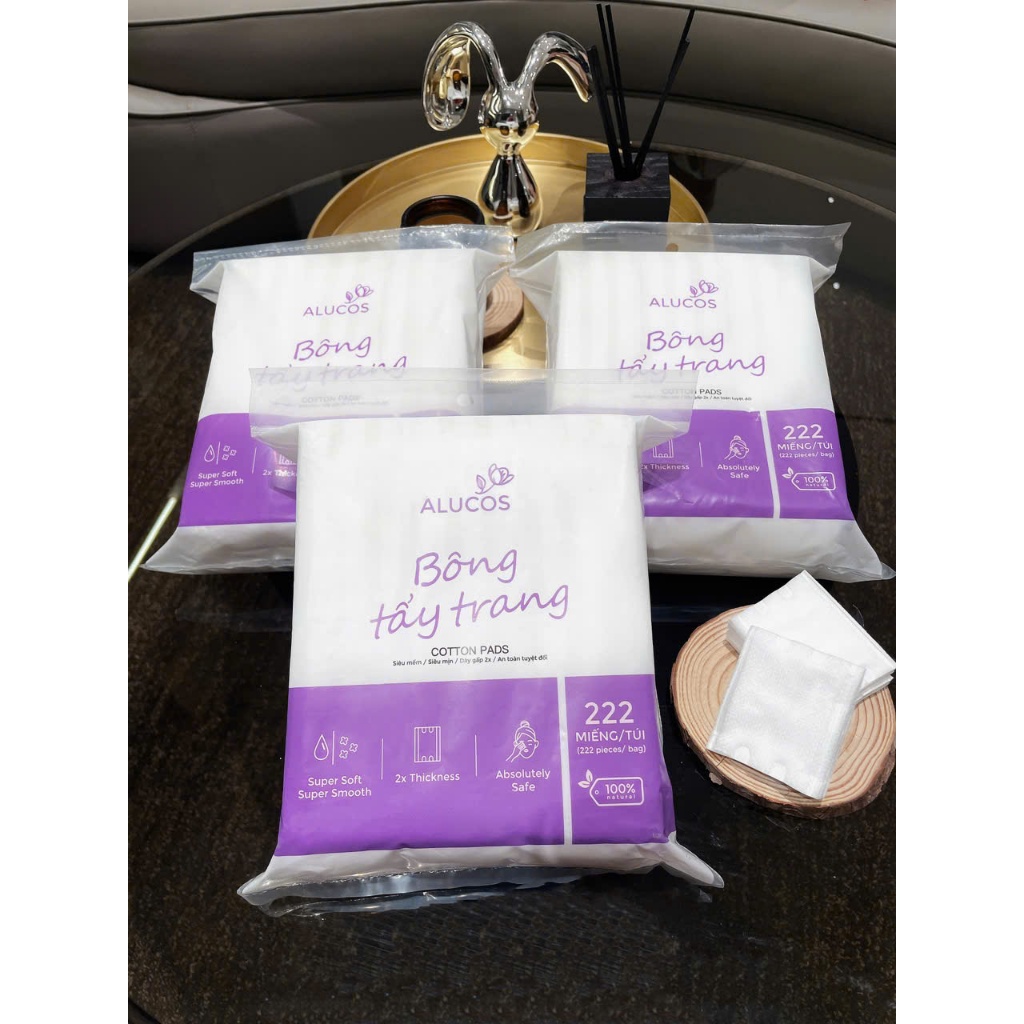 Bông Tẩy Trang Alucos Túi/222 miếng – 3 Lớp Mềm Mịn, Thấm Hút Tốt