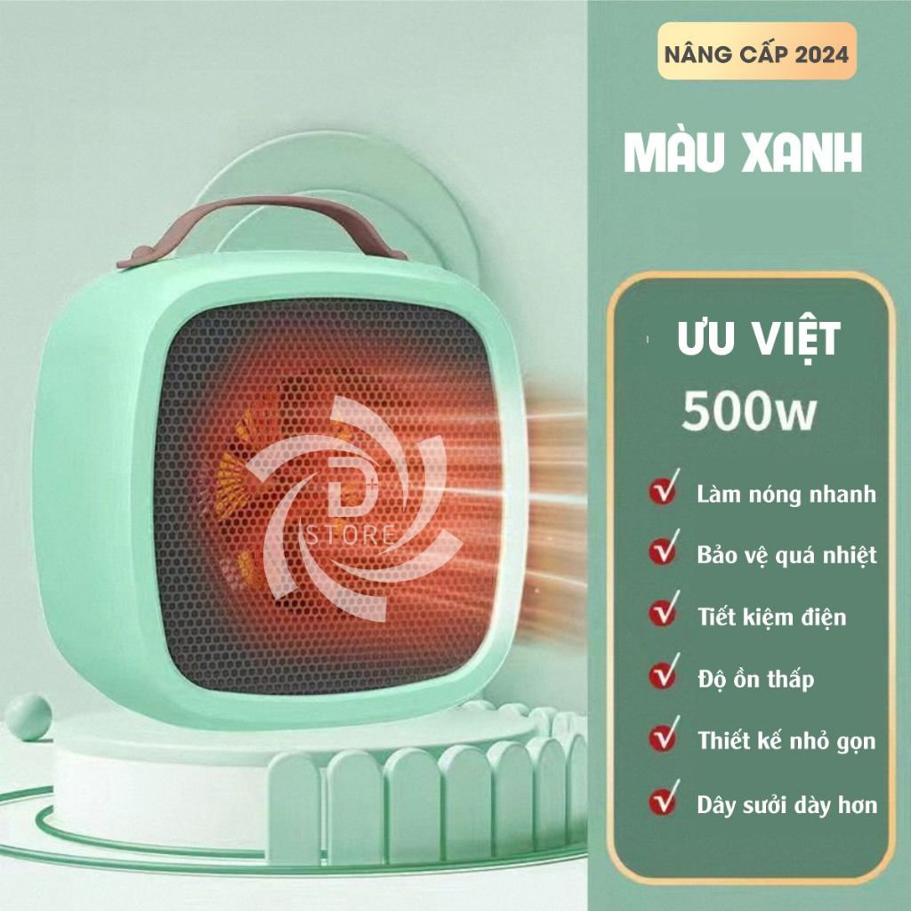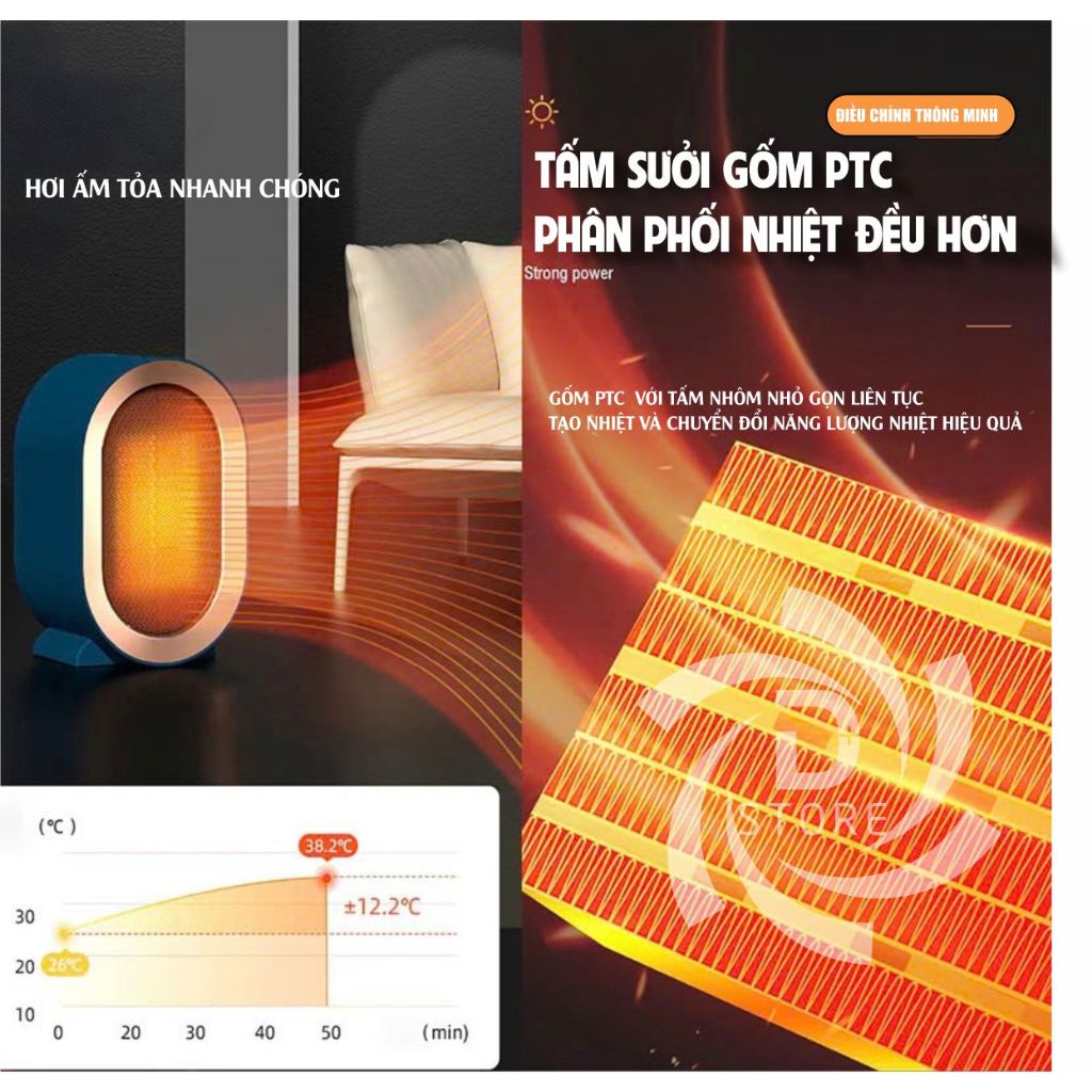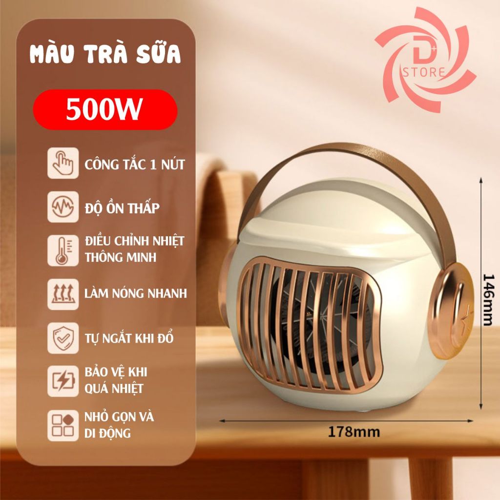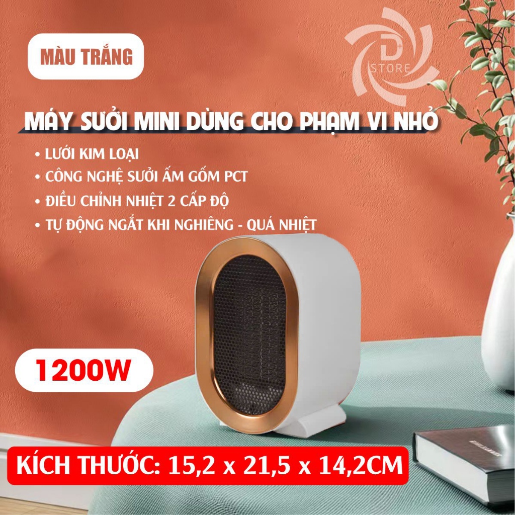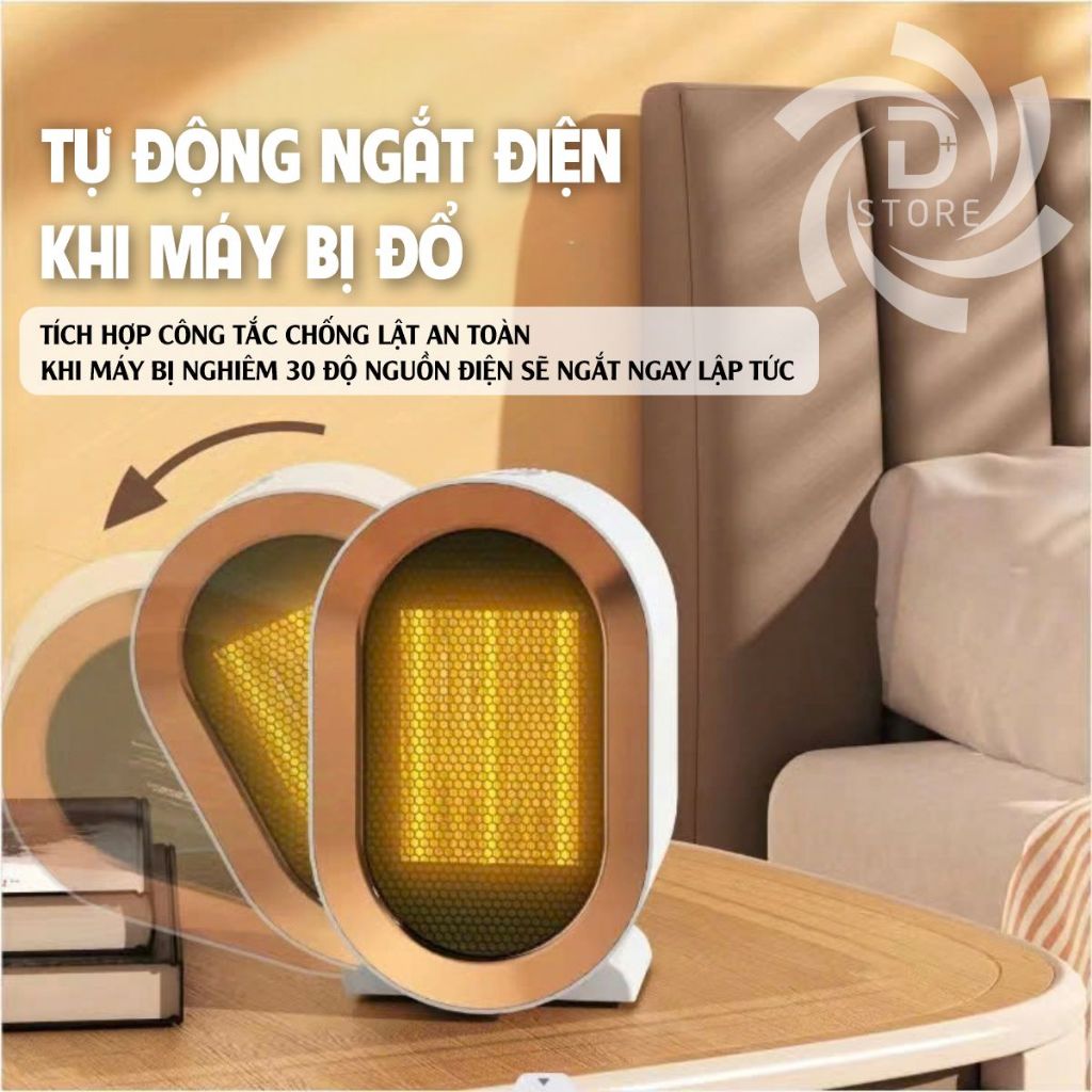 Máy sưởi mini gốm PTC DSTORE 1200W quạt sưởi tiết kiệm điện - sưởi ấm thông minh 2025