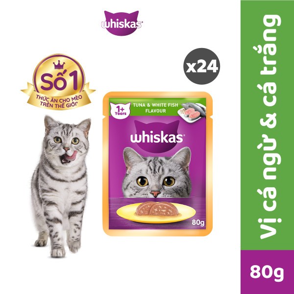 Thức Ăn Dạng Sốt Cho Mèo Trưởng Thành WHISKAS Mix 8 Vị - 80g (24 Túi)