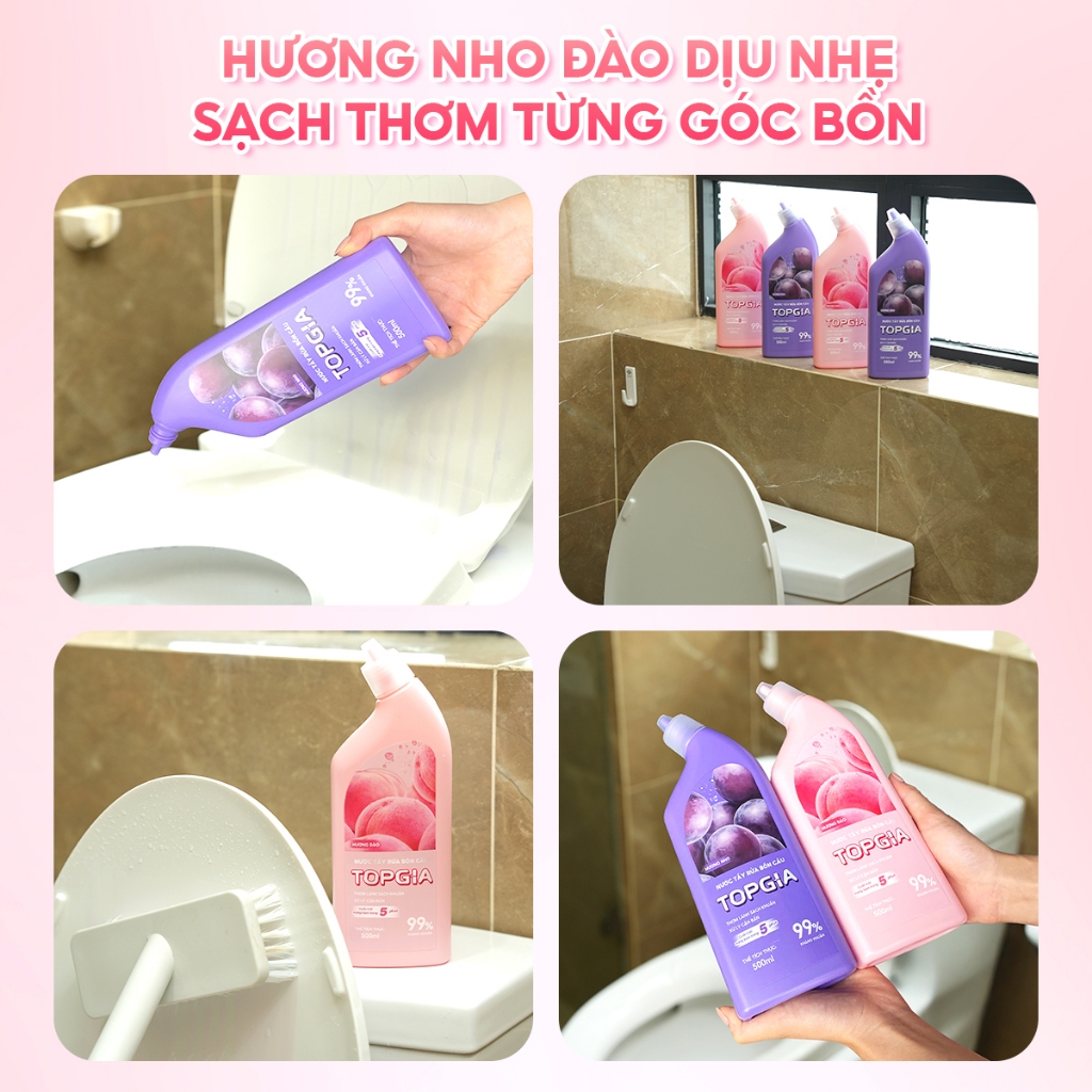 Combo 4 chai 500ml nước tẩy bồn cầu TOPGIA hương thơm dịu nhẹ, khử mùi hôi phù hợp với nhiều bề mặt
