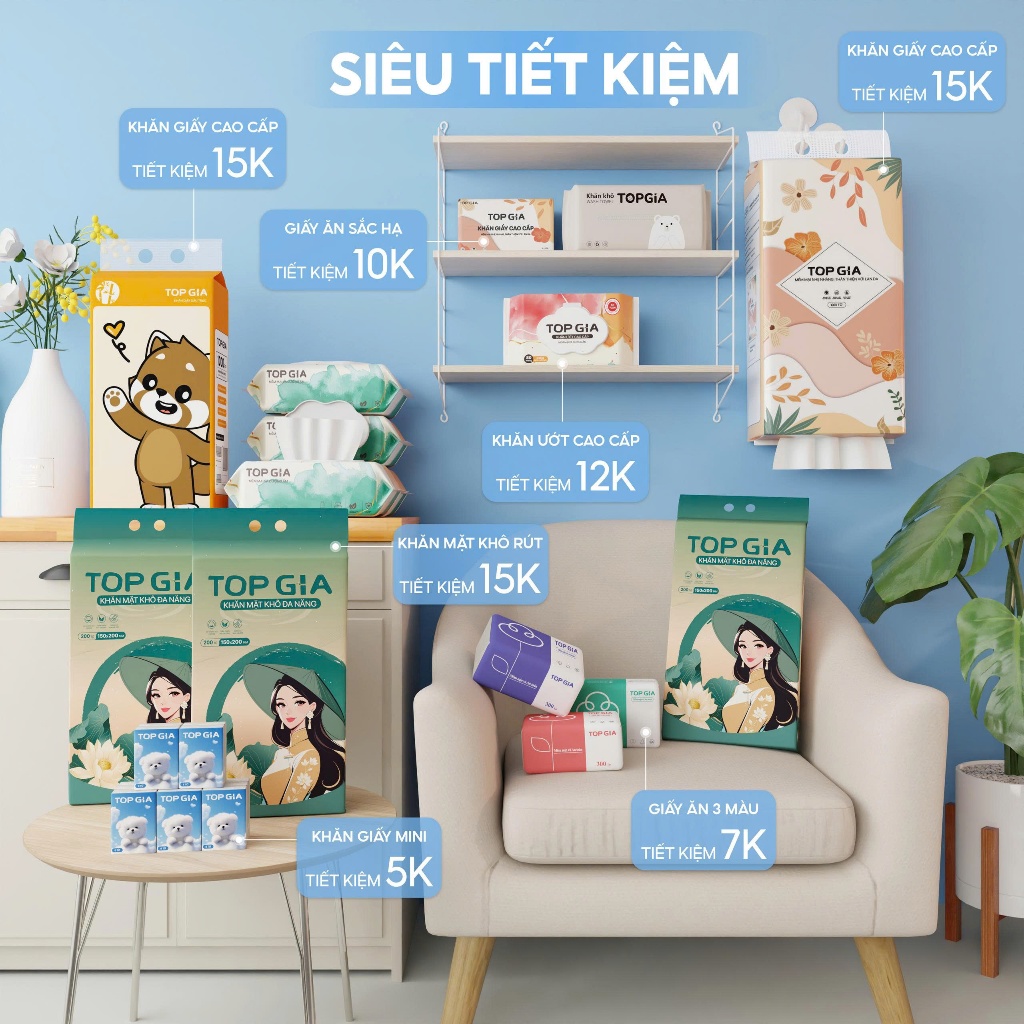 Bịch 10 gói khăn giấy mini TOPGIA, 1 gói 8 tờ, giấy bỏ túi cao cấp 4 lớp đanh dai mềm mịn