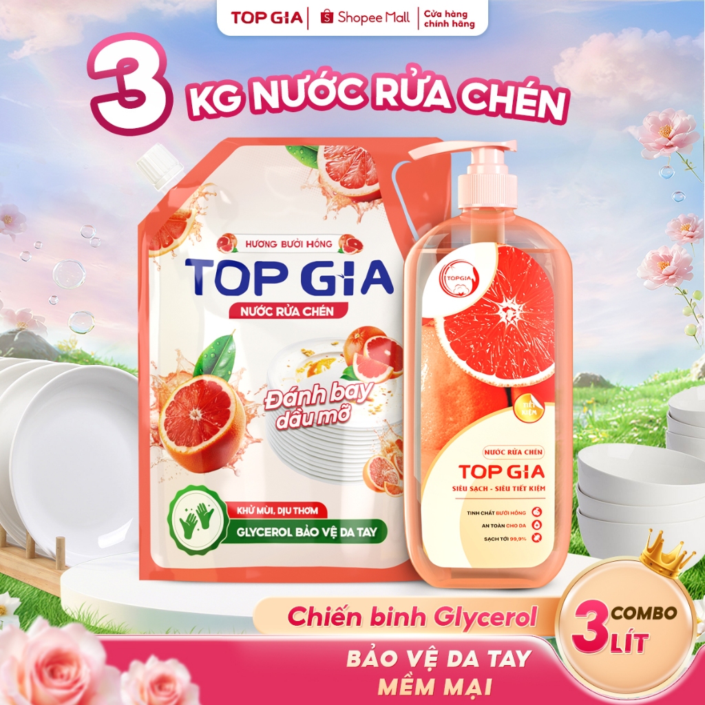 [COMBO 3KG TIẾT KIỆM] Nước Rửa Chén Bát TOPGIA Hương Thiên Nhiên, An Toàn Không Làm Khô Da