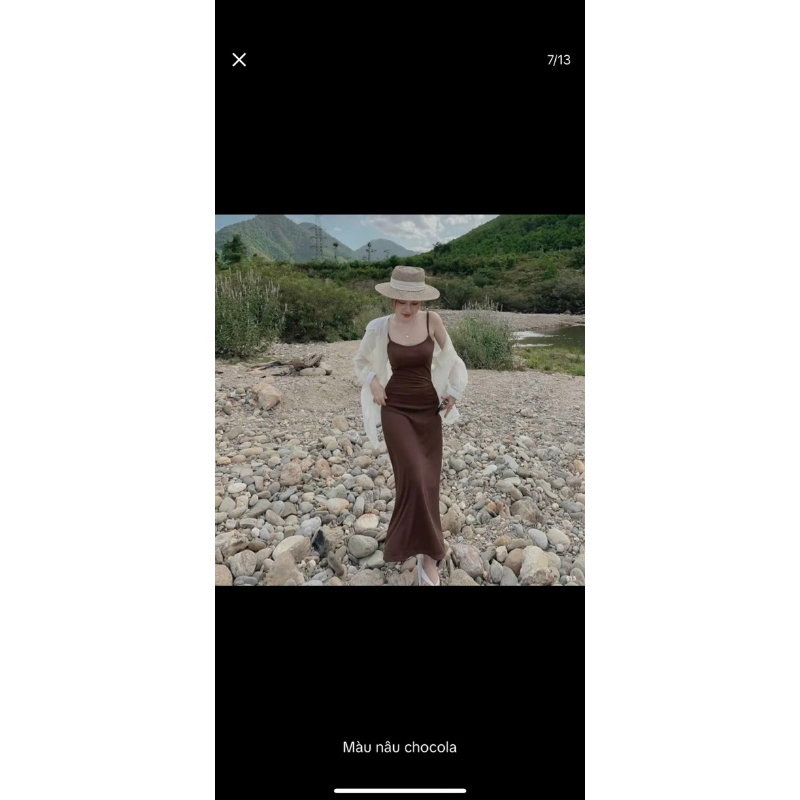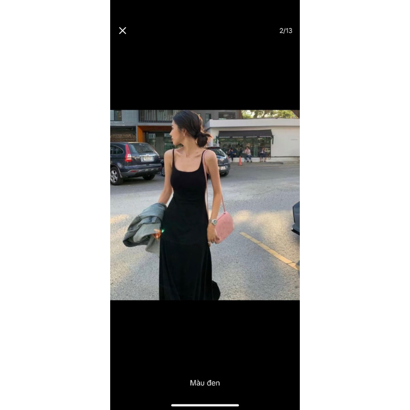 D003 Đầm maxi nữ hai dây dáng dài xòe nhiều màu chất thun tăm lạnh tôn dáng, size S M