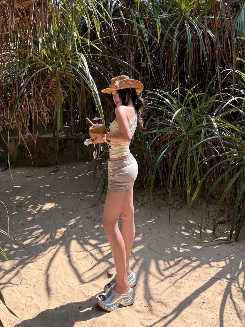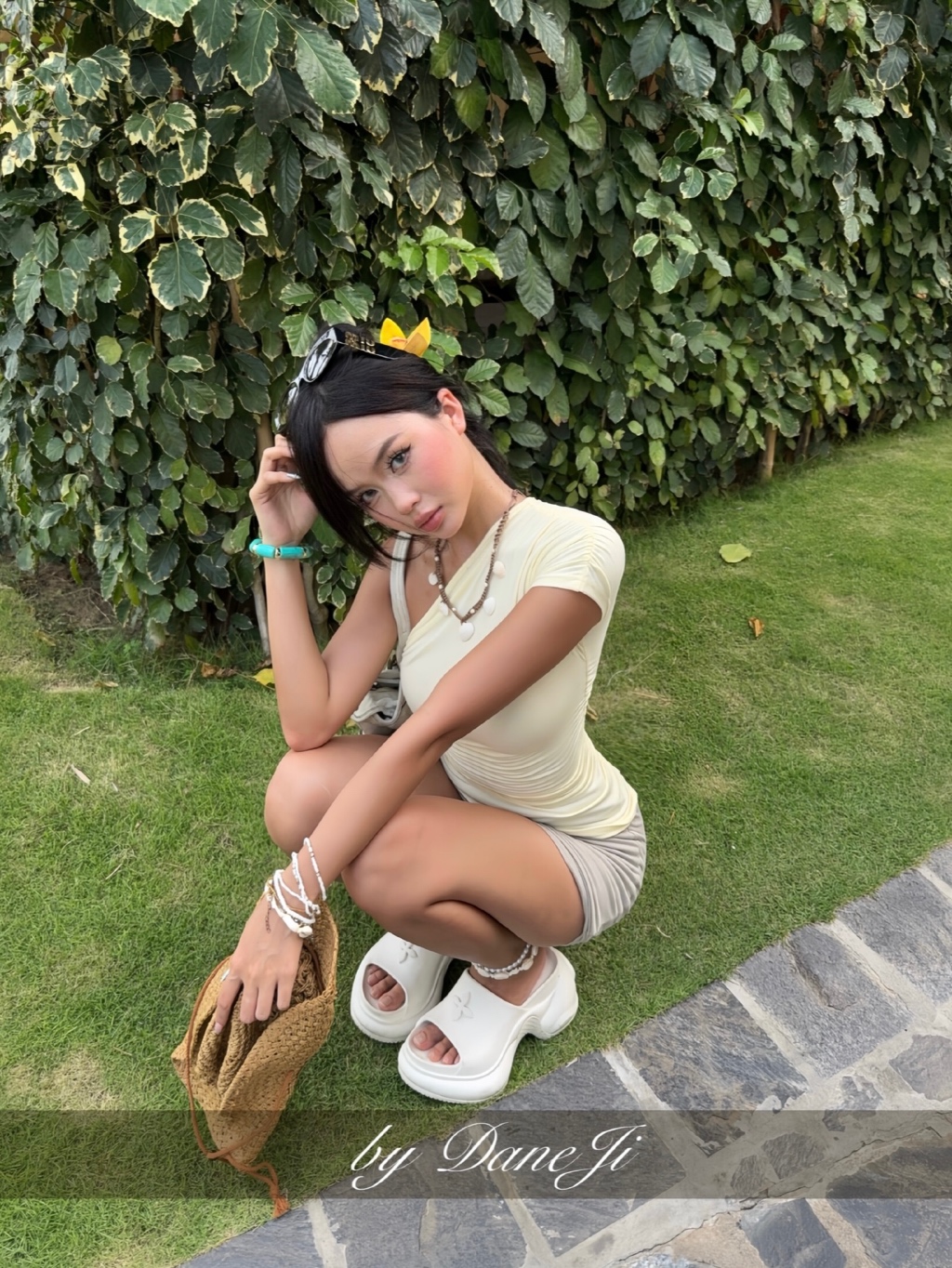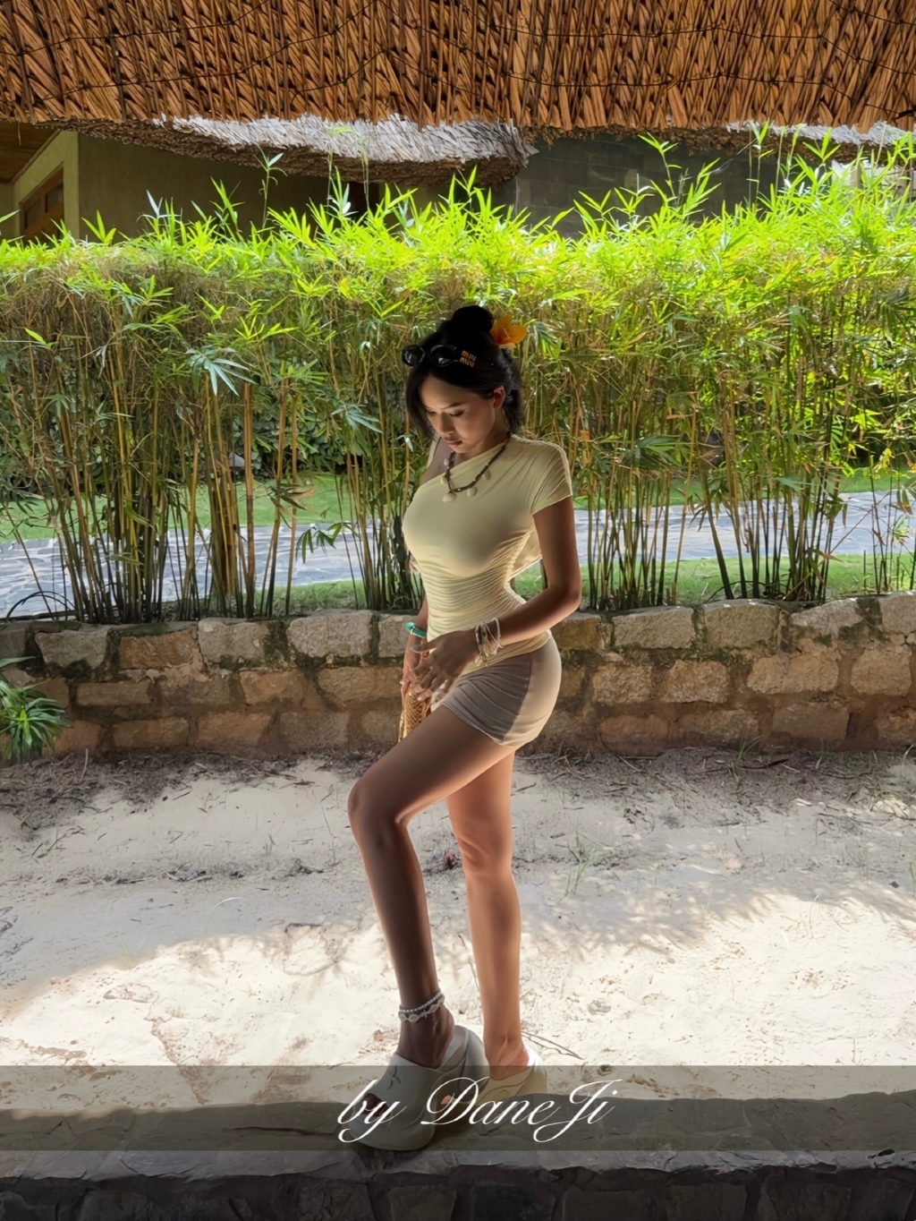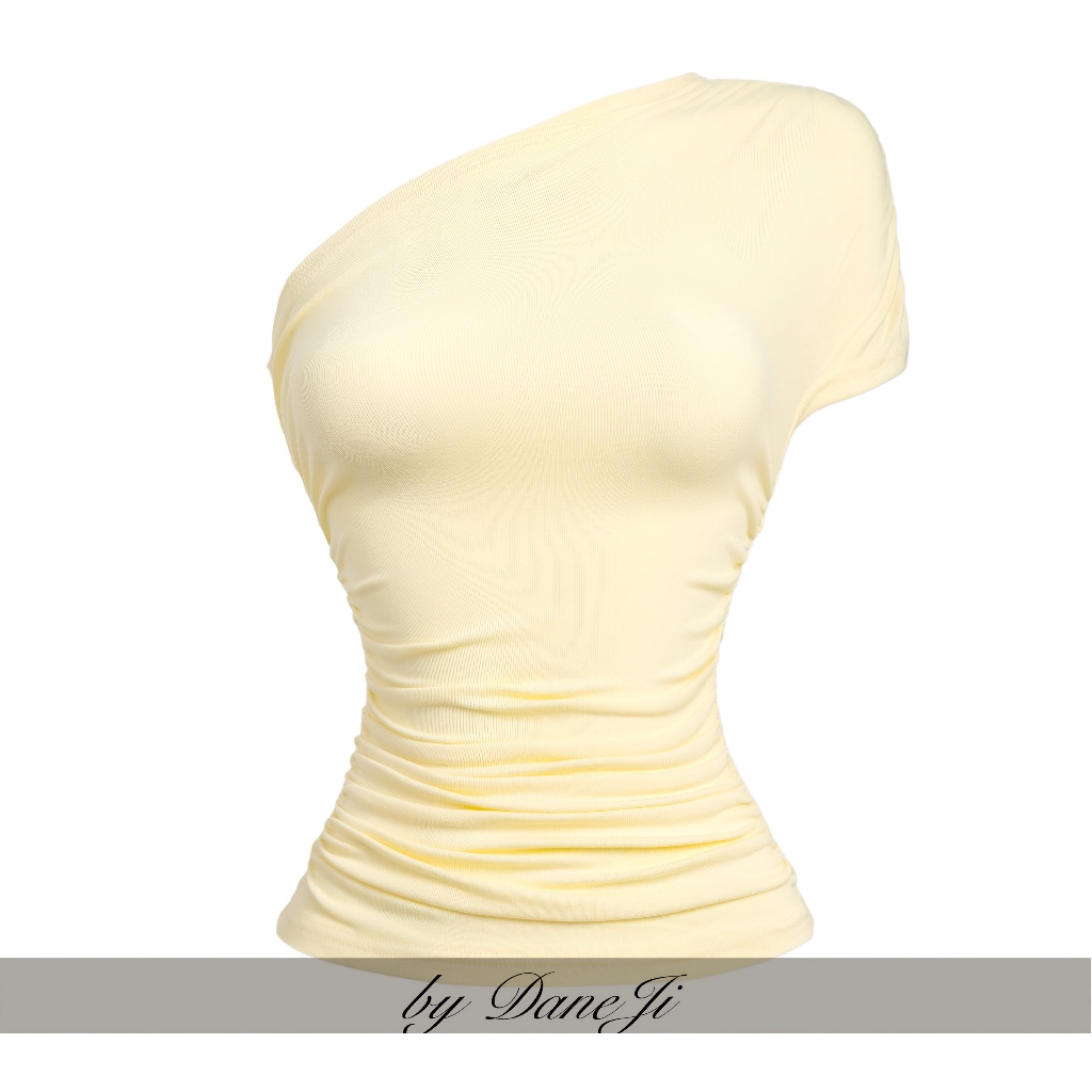 [ 𝐕𝐈𝐁𝐄 𝐒𝐔𝐌𝐅𝐈𝐓𝐒 ] Set áo thun lệch vai Slimfit DANEJI nhún eo - Chân váy mini skirt Sữa hạt xám pastel MÙA HÈ