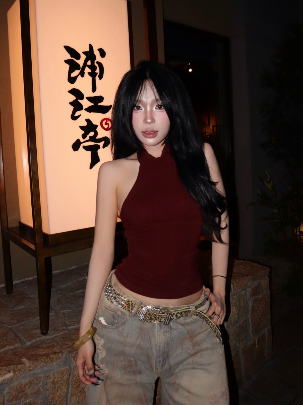 [ GITA TOP ] Áo cổ yếm cổ cao hở lưng slimfit dày dặn, 2 lớp chiết eo [ COLLECTION MÙA TẾT ]